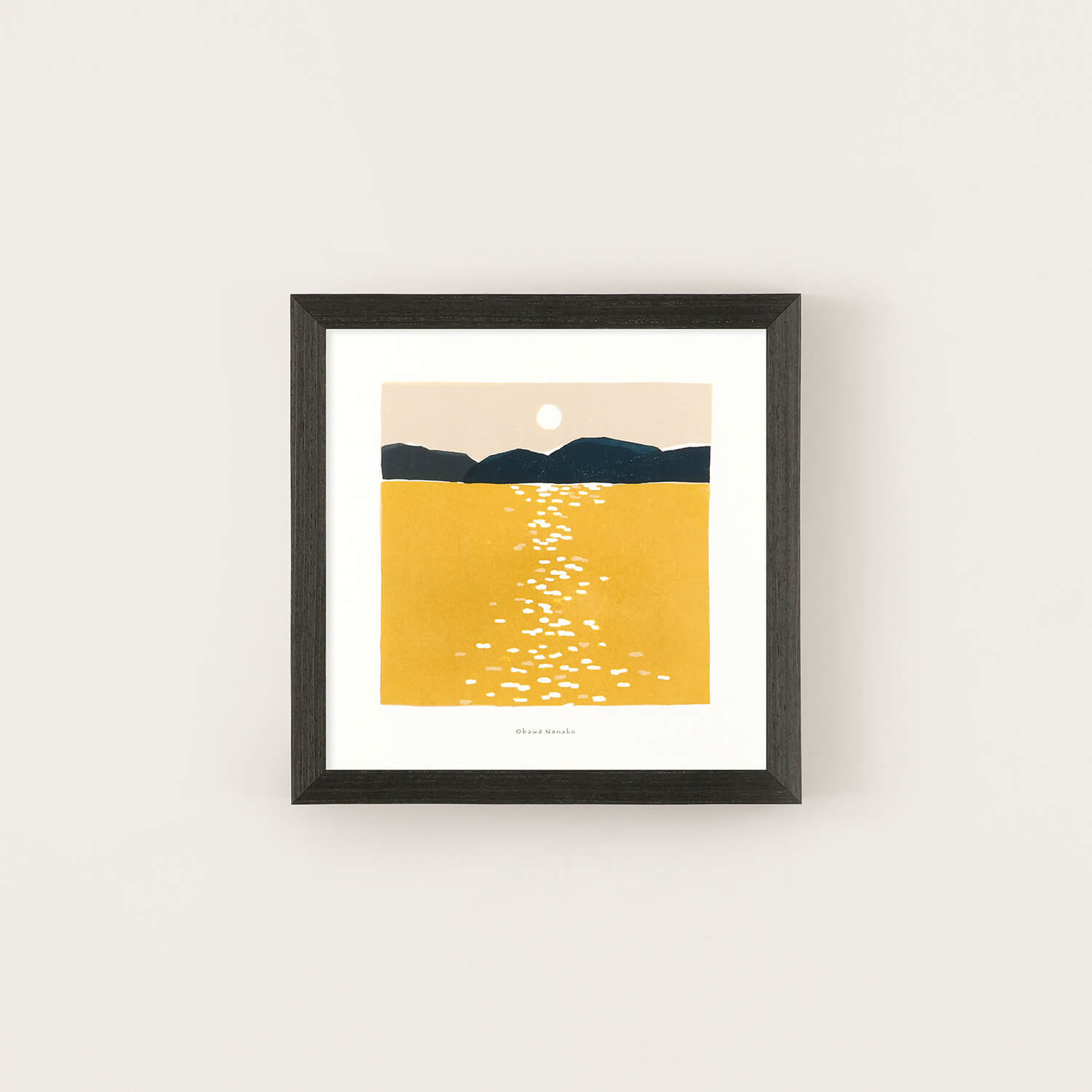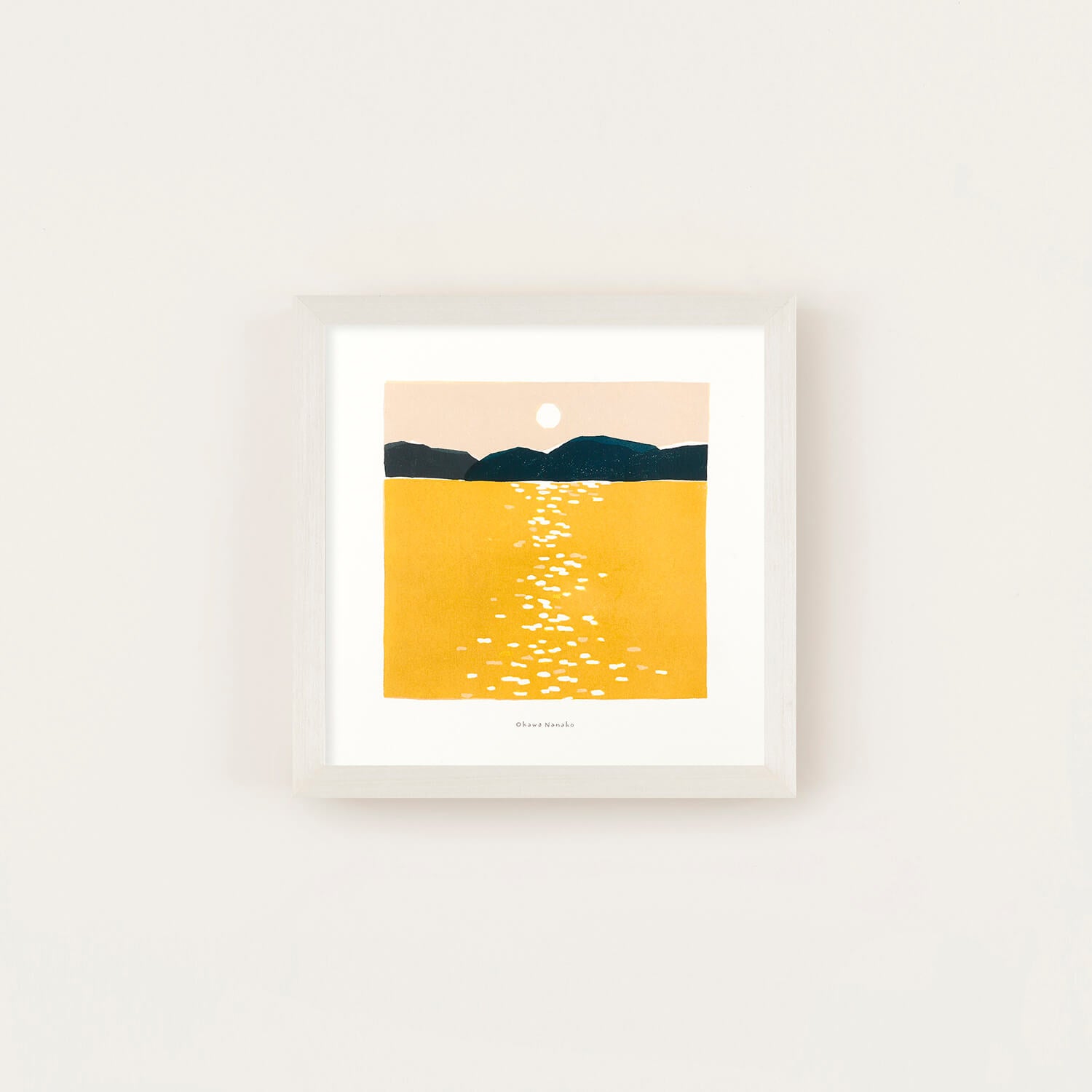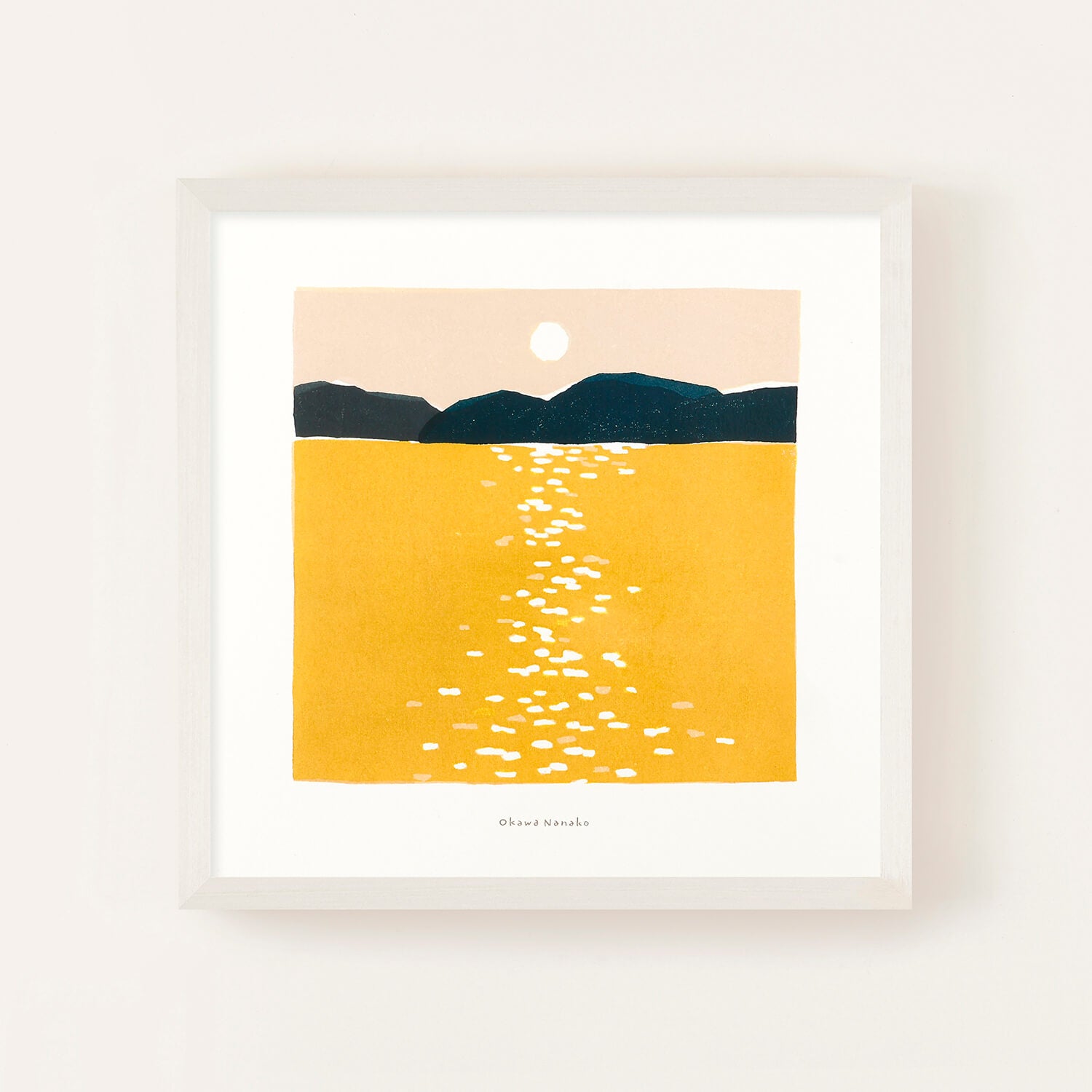 This is an original artwork by Nanako Okawa, depicting the morning sea dyed golden by the reflection of the sunrise. The sunlight (sunroad) illuminating the sea is both divine and gentle, enveloping the viewer. Please enjoy it by superimposing it with the scenery in your heart.