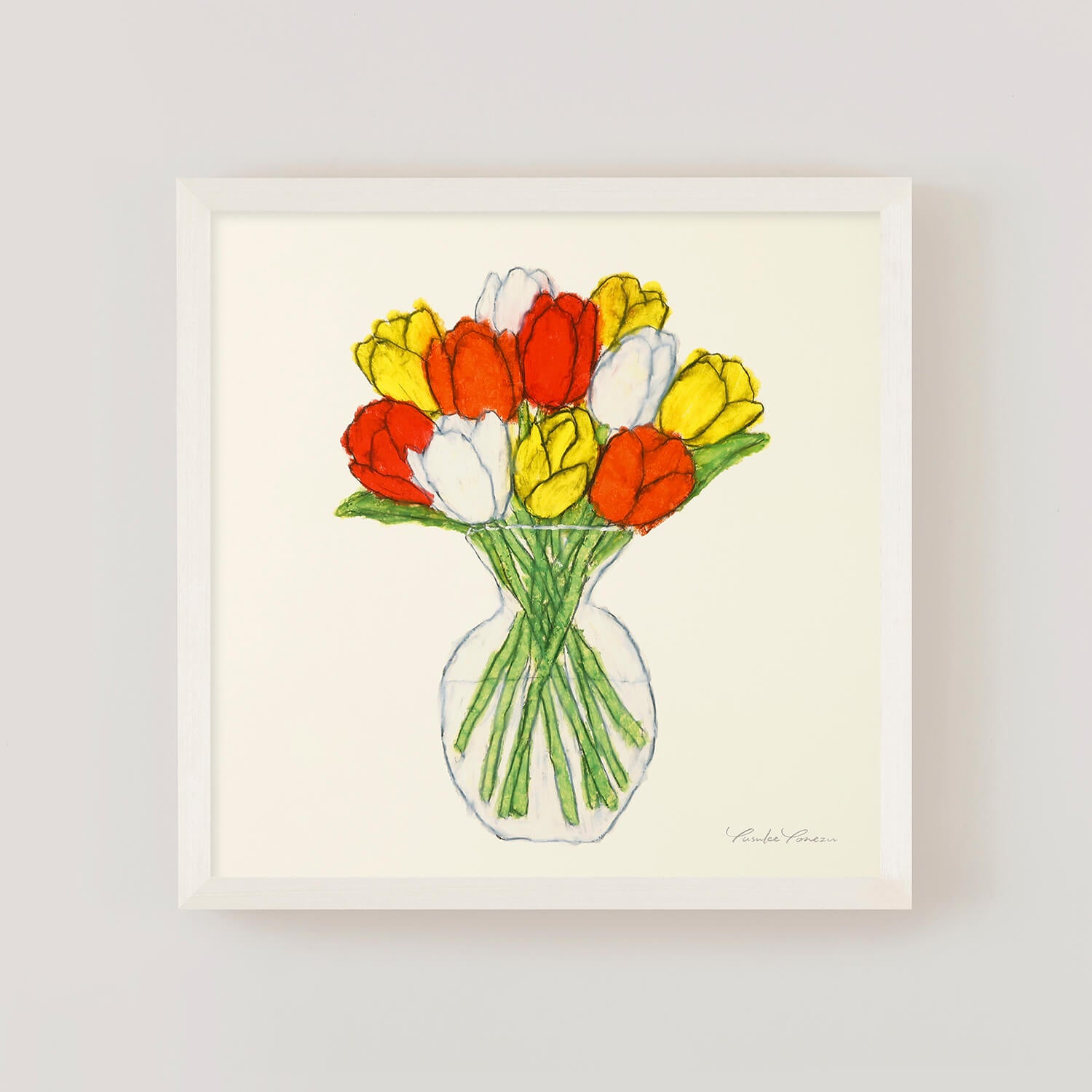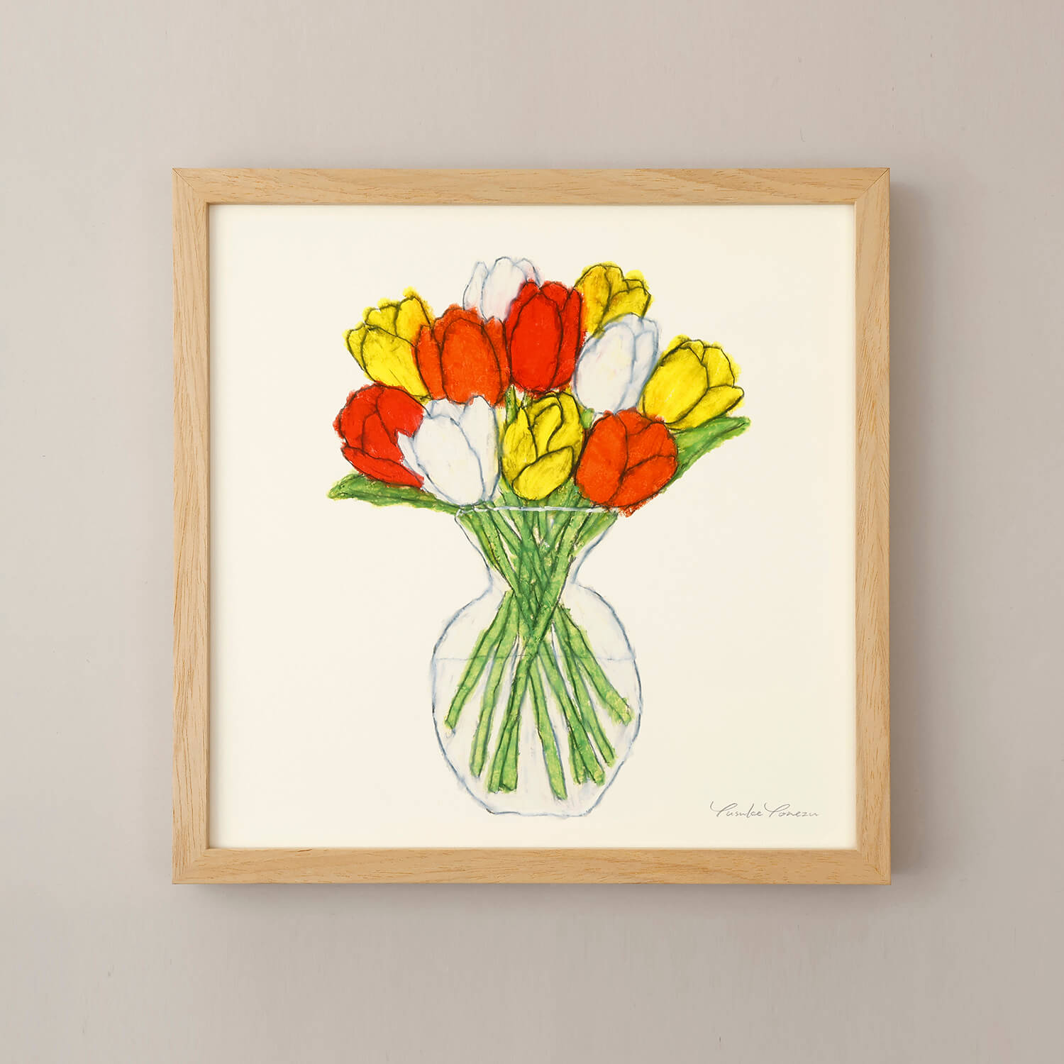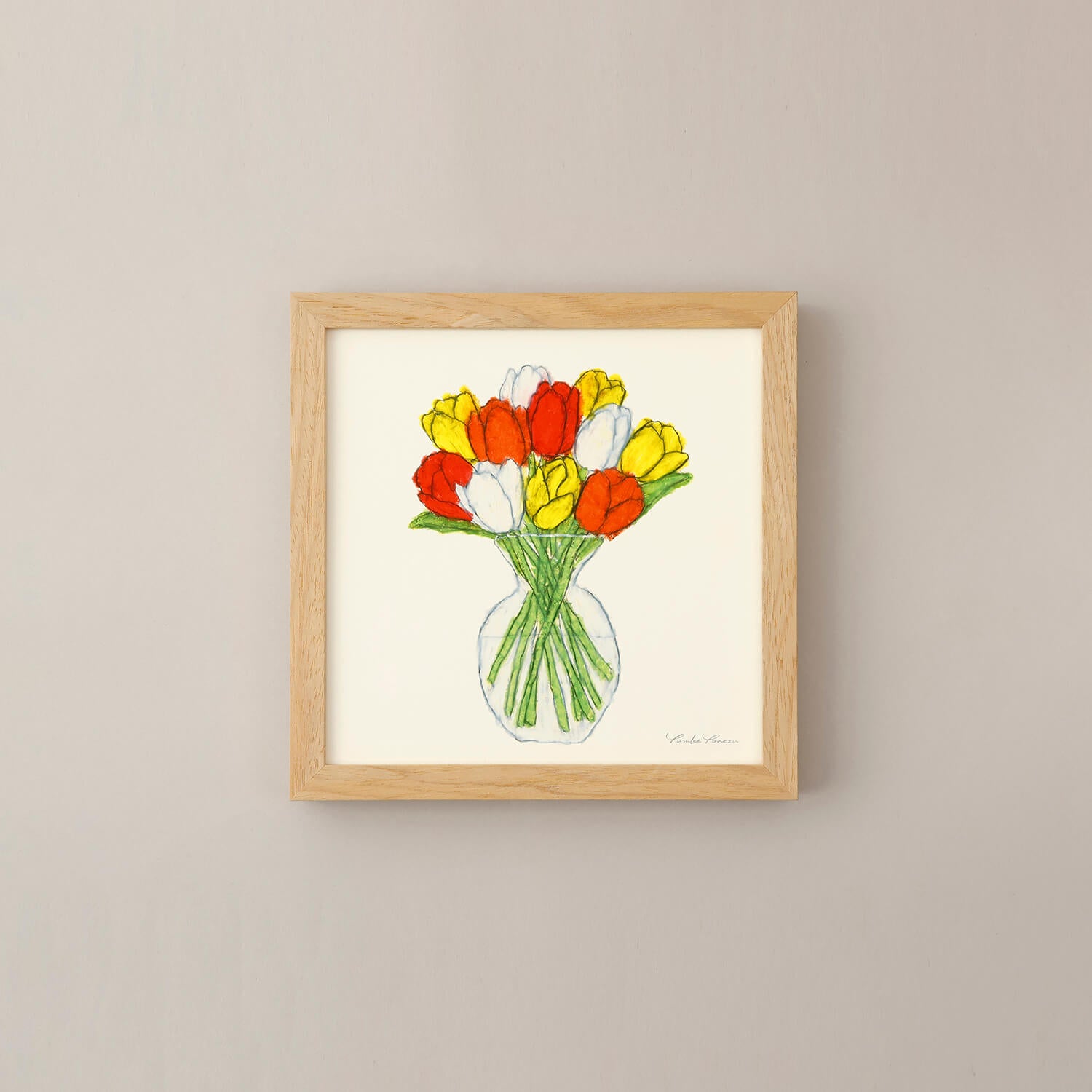 Tulips, which are often cultivated for ornamental purposes in European countries, including the Netherlands, and in America, have the flower meanings of "compassion" and "universal love." If you had a painting like this displayed, you would surely feel a gentle warmth in your heart. A work by Yusuke Yonetsu.