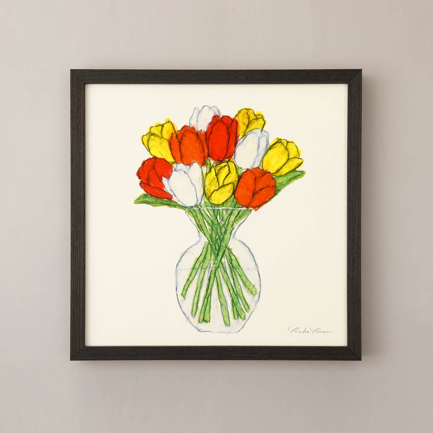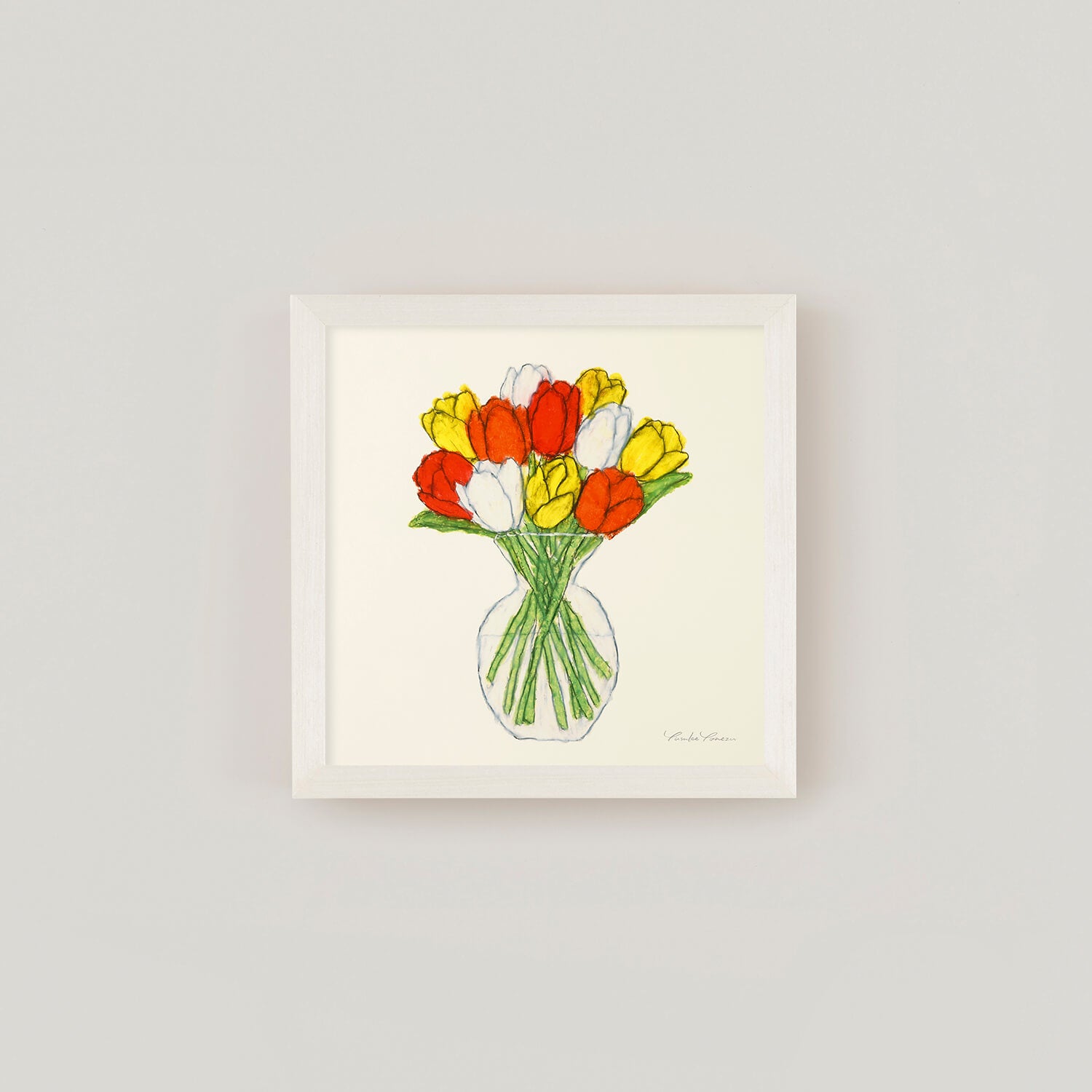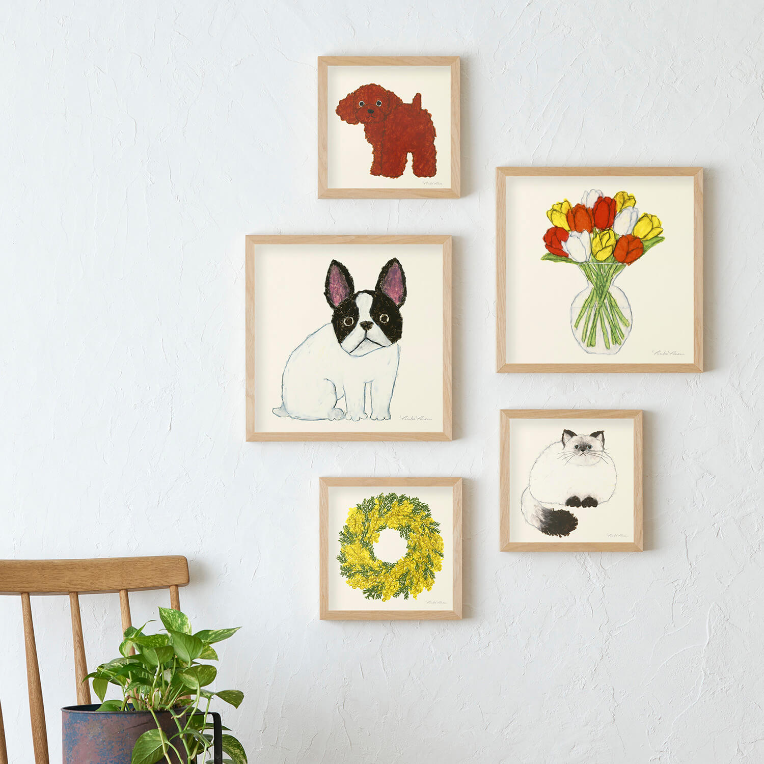 Tulips, which are often cultivated for ornamental purposes in European countries, including the Netherlands, and in America, have the flower meanings of "compassion" and "universal love." If you had a painting like this displayed, you would surely feel a gentle warmth in your heart. A work by Yusuke Yonetsu.