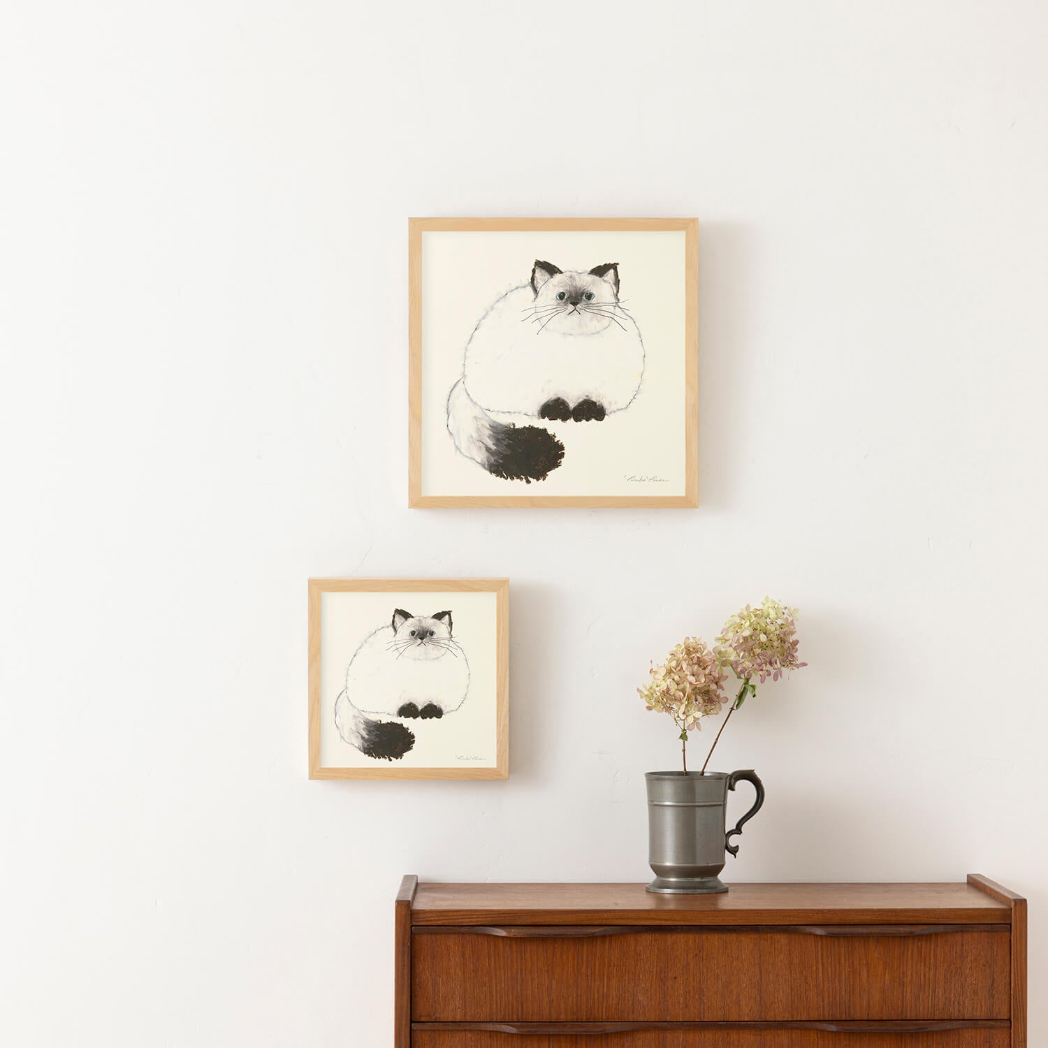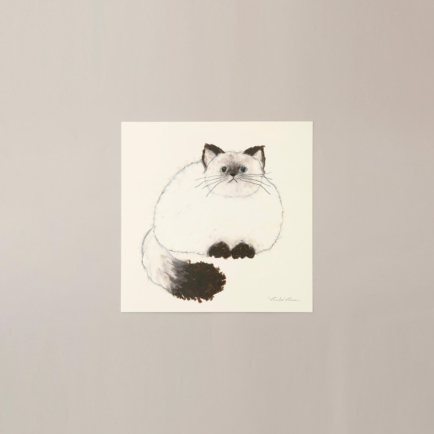 The Himalayan cat is the result of breeding a Persian cat, known as the king of the cat world, with the friendly Siamese cat. Its name comes from the Himalayas. Yūsuke Yonetsu's depiction of the round-faced Himalayan is lovely, with its refined and gentle expression.