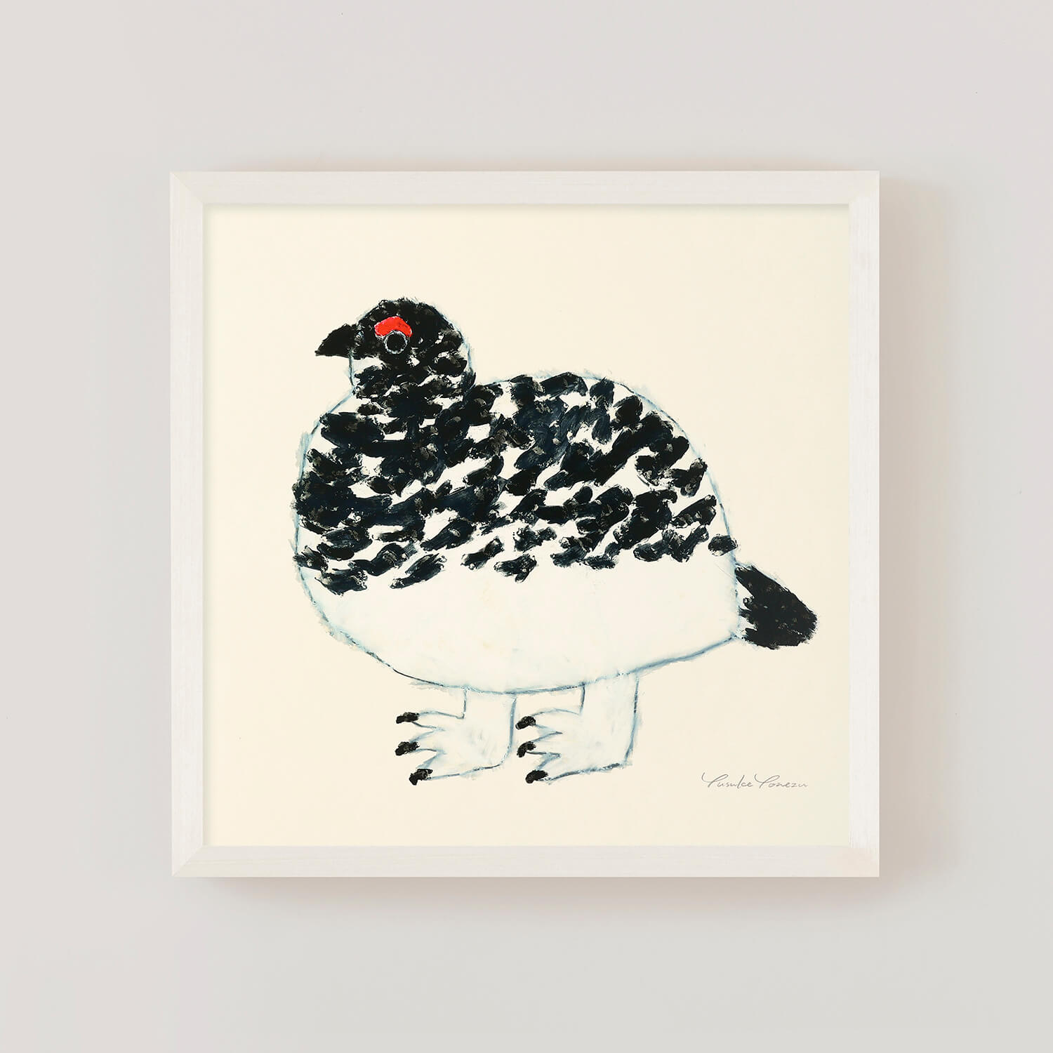 The Japanese snowcock, an endangered species that lives only in the Northern and Southern Alps and surrounding mountainous areas in Japan. This is a work by Yusuke Yonetsu, whose plump and rounded body shape makes people feel happy.