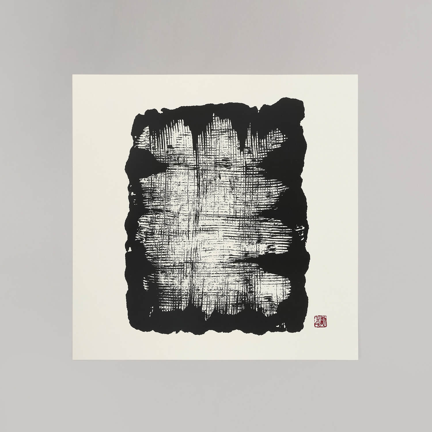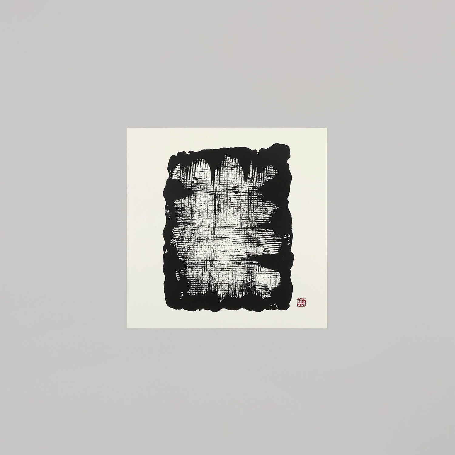 This is a Joystream piece composed of the words "思" (meaning to think, to feel, or to have a heart) and "廻" (meaning to revolve, to circle, or to turn). It evokes the image of color melting out from the outside to the inside of a large frame, or conversely, gradually becoming denser and solidifying from the inside out.