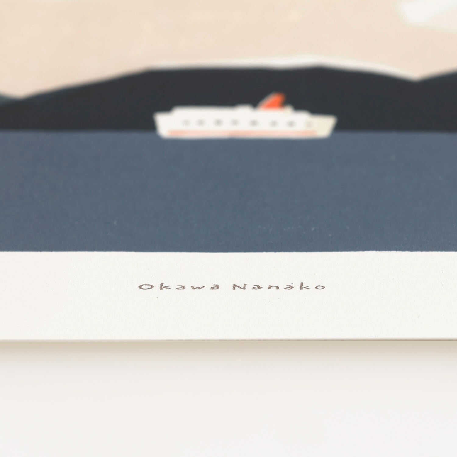 Where is the cruise ship heading as it crosses the blue sea? This is a newly commissioned work by Nanako Okawa, capturing the leisurely flow of time at lunchtime. Please enjoy it by overlaying it with the scenery in your own heart.