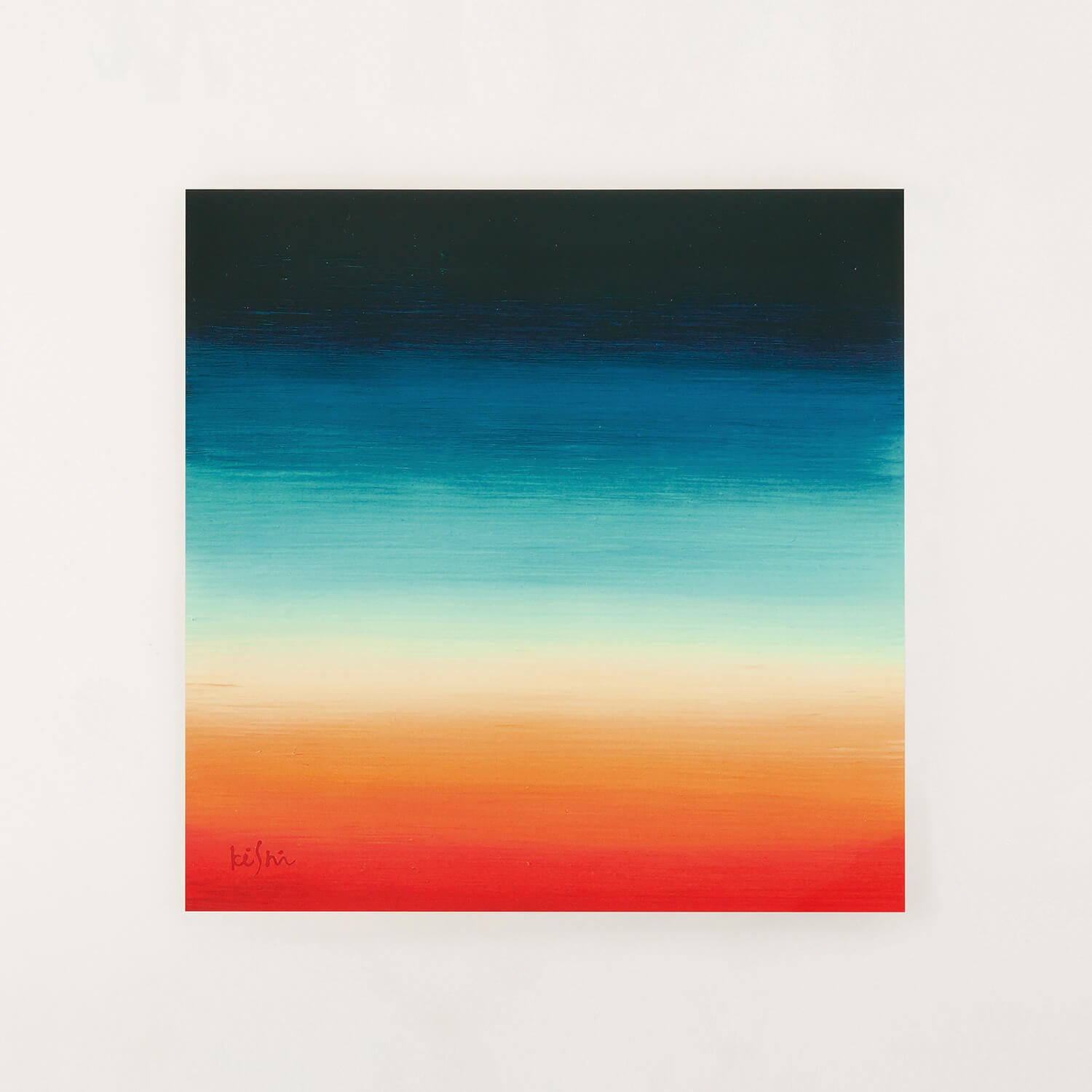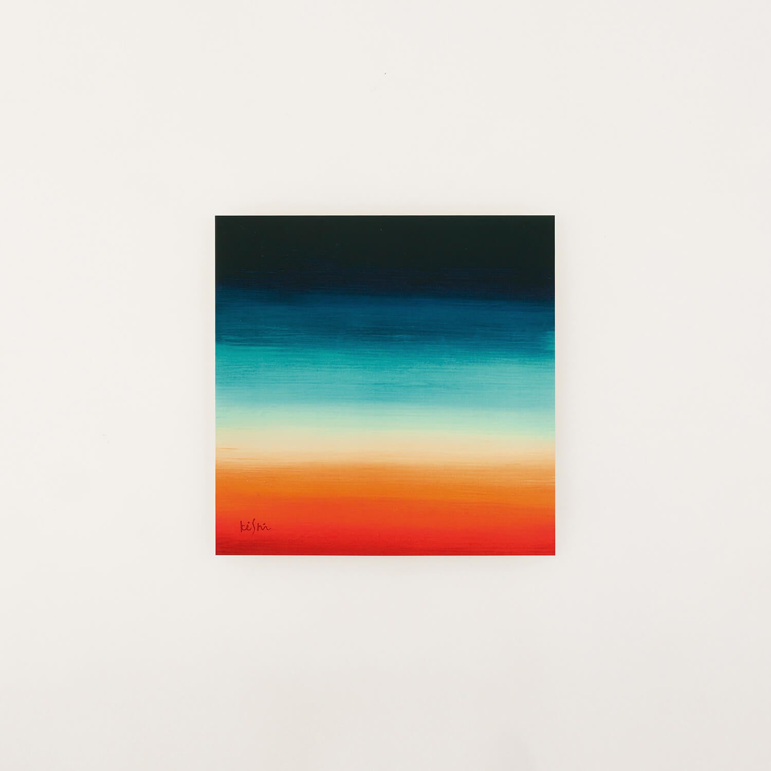 This piece features vibrant colors layered horizontally, creating a sense of visual warmth and depth. While abstract, it quietly evokes memories of landscapes that seem familiar, as if seen somewhere before.