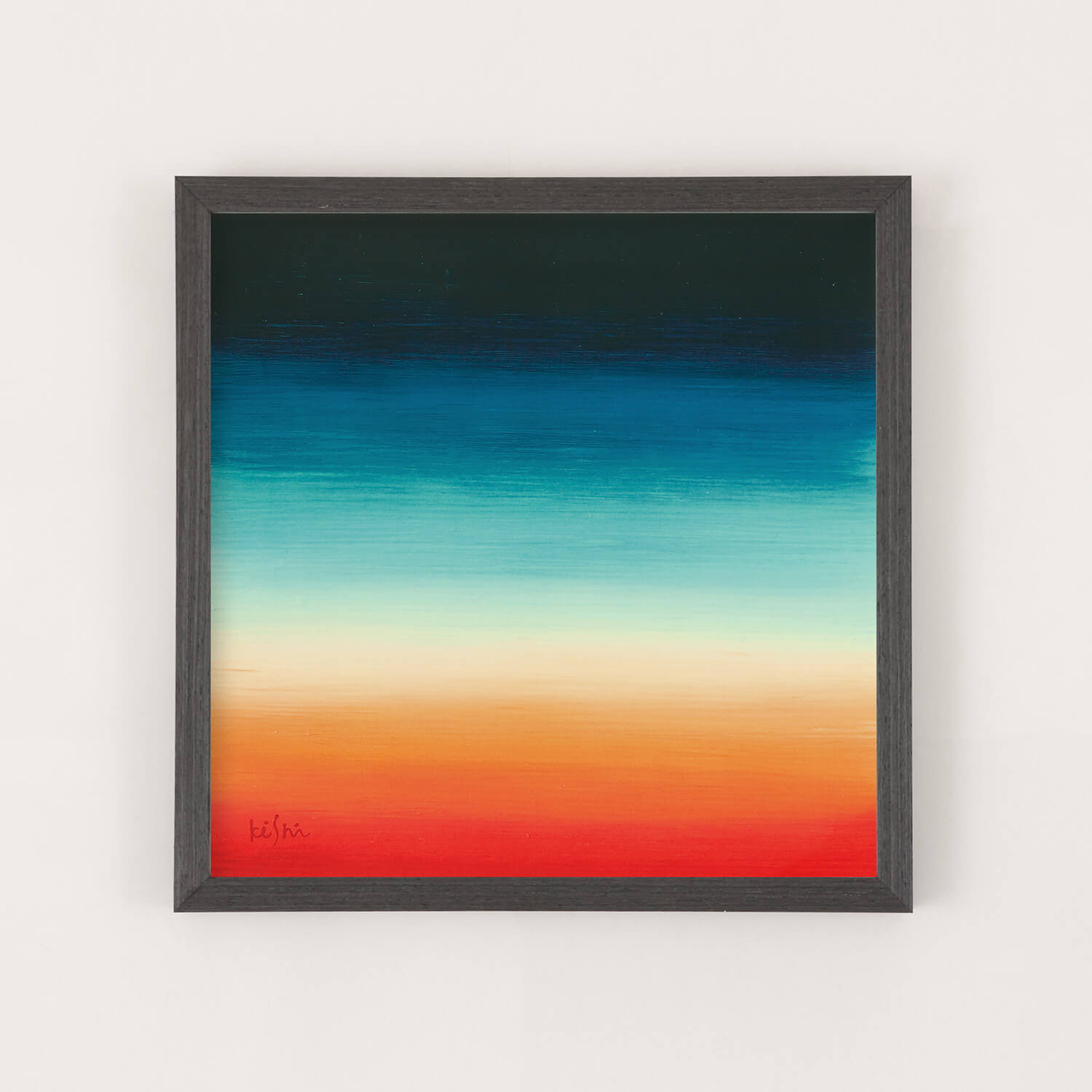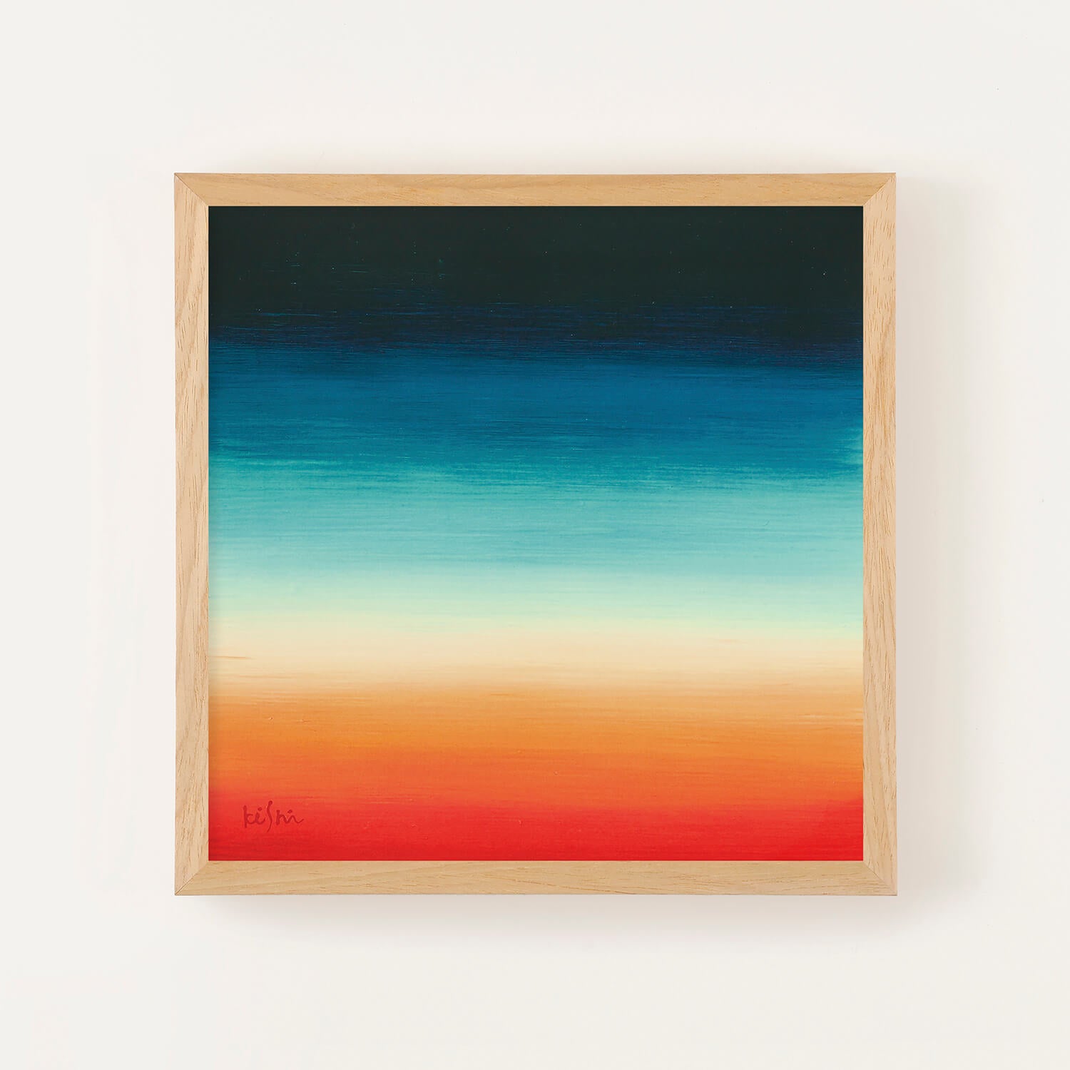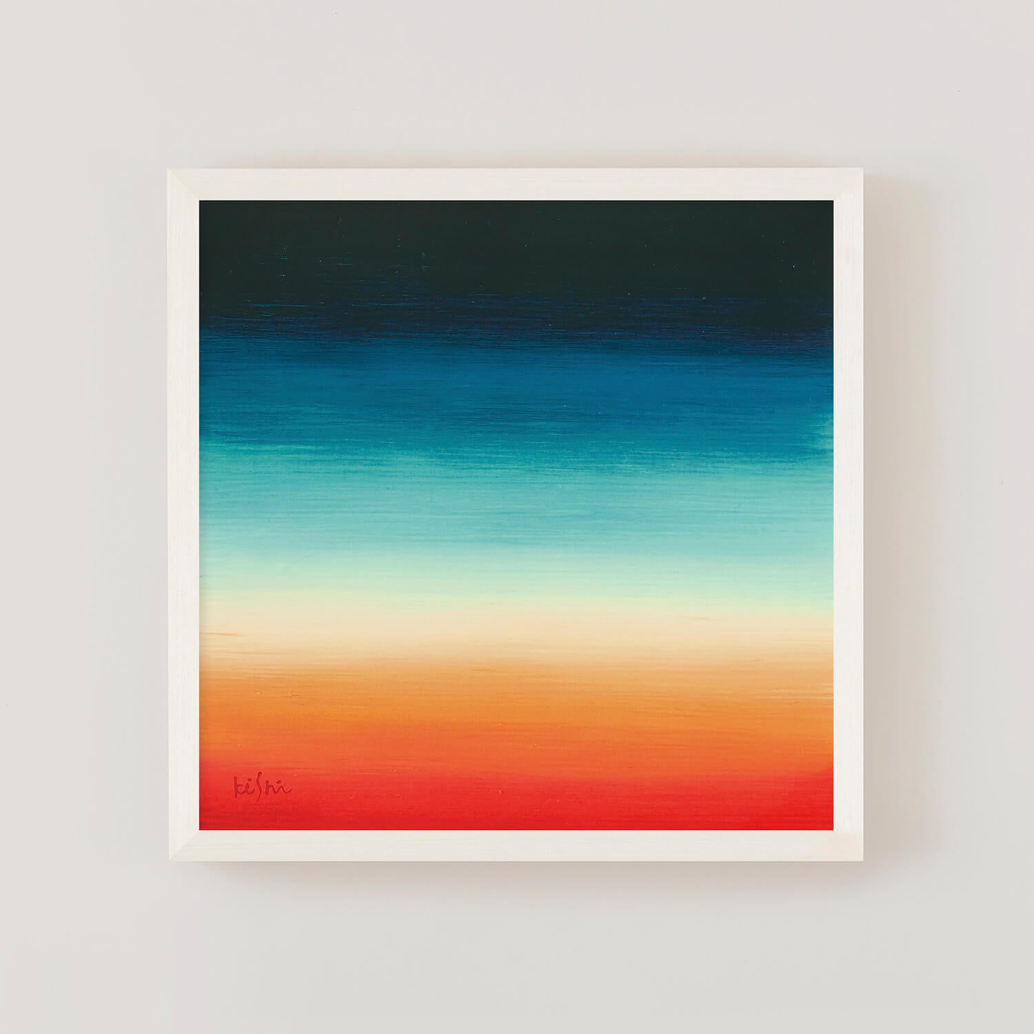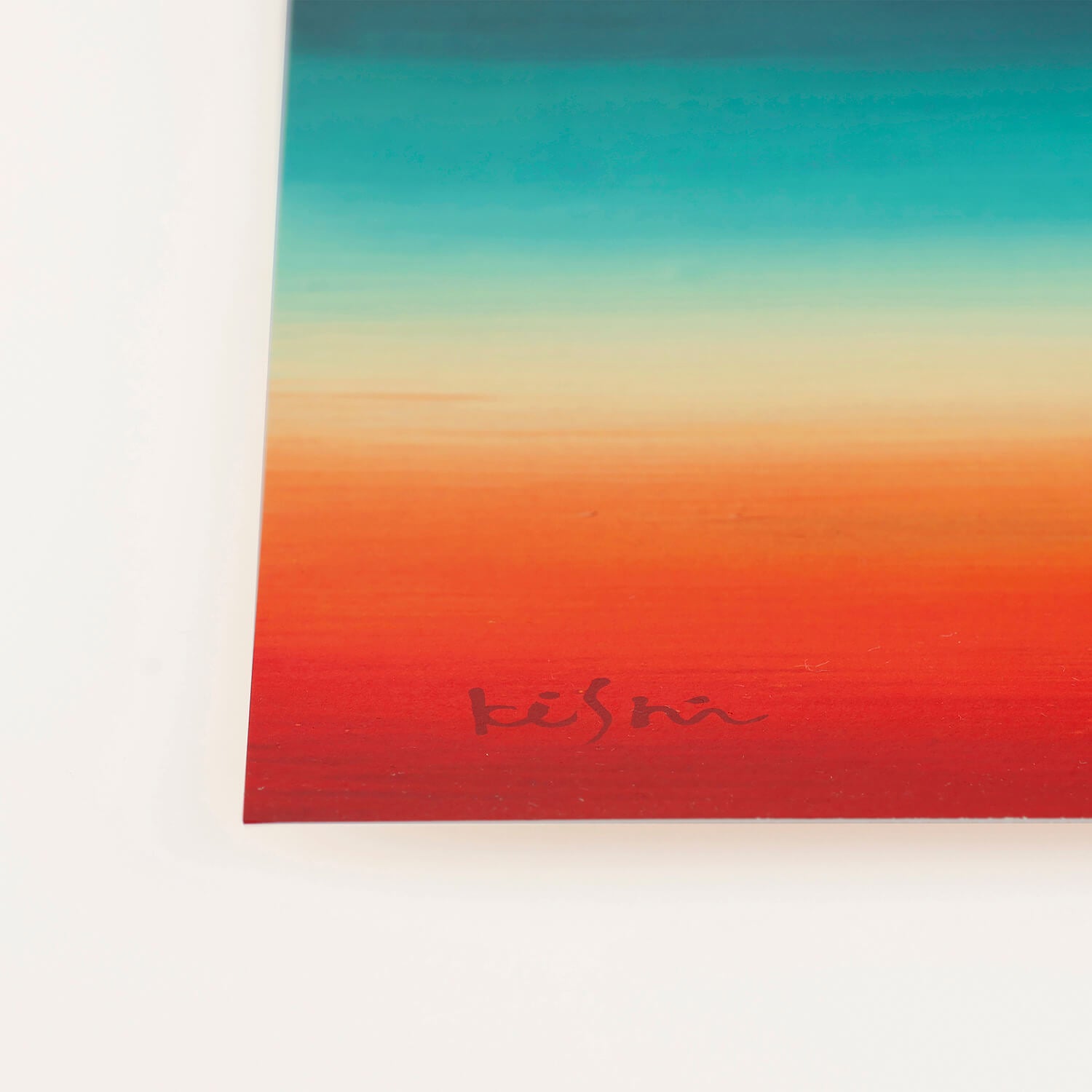 This piece features vibrant colors layered horizontally, creating a sense of visual warmth and depth. While abstract, it quietly evokes memories of landscapes that seem familiar, as if seen somewhere before.