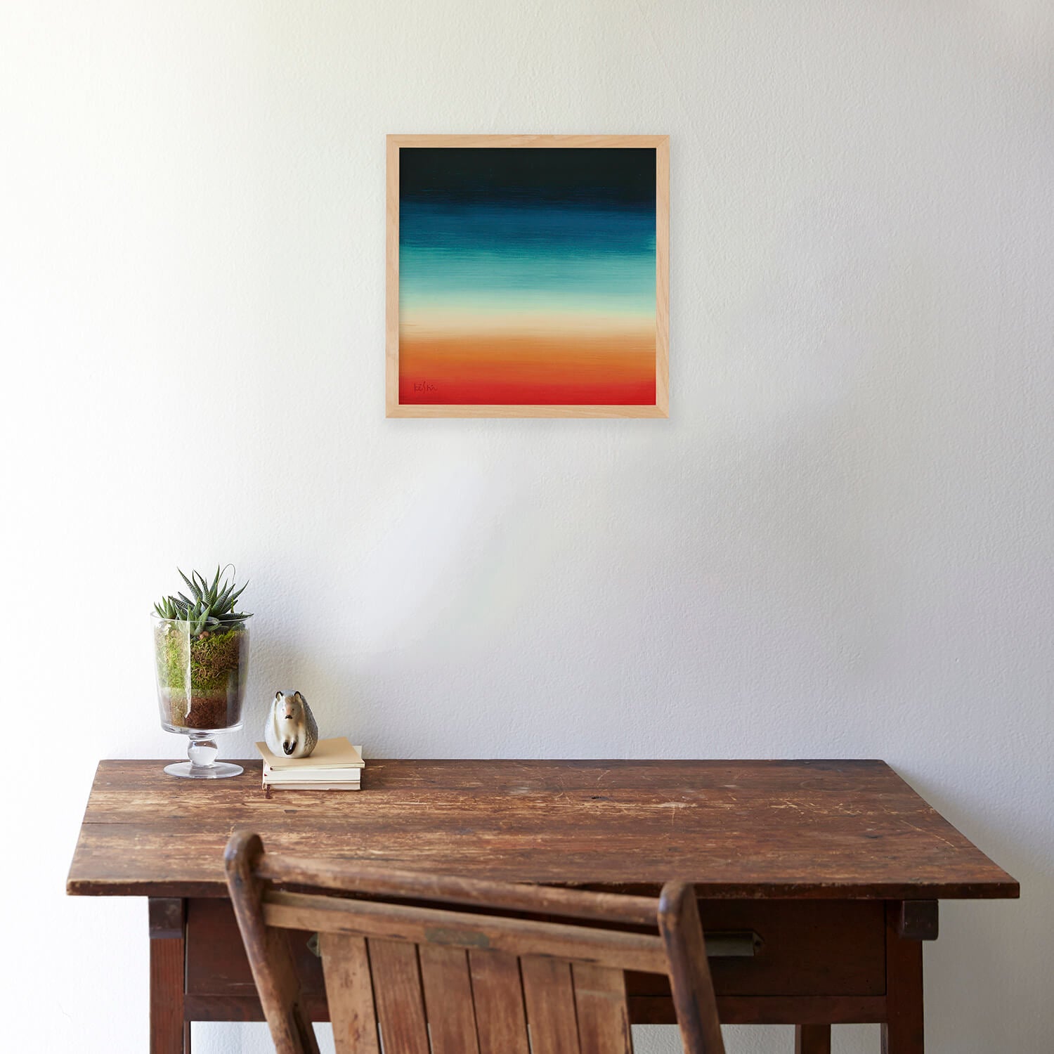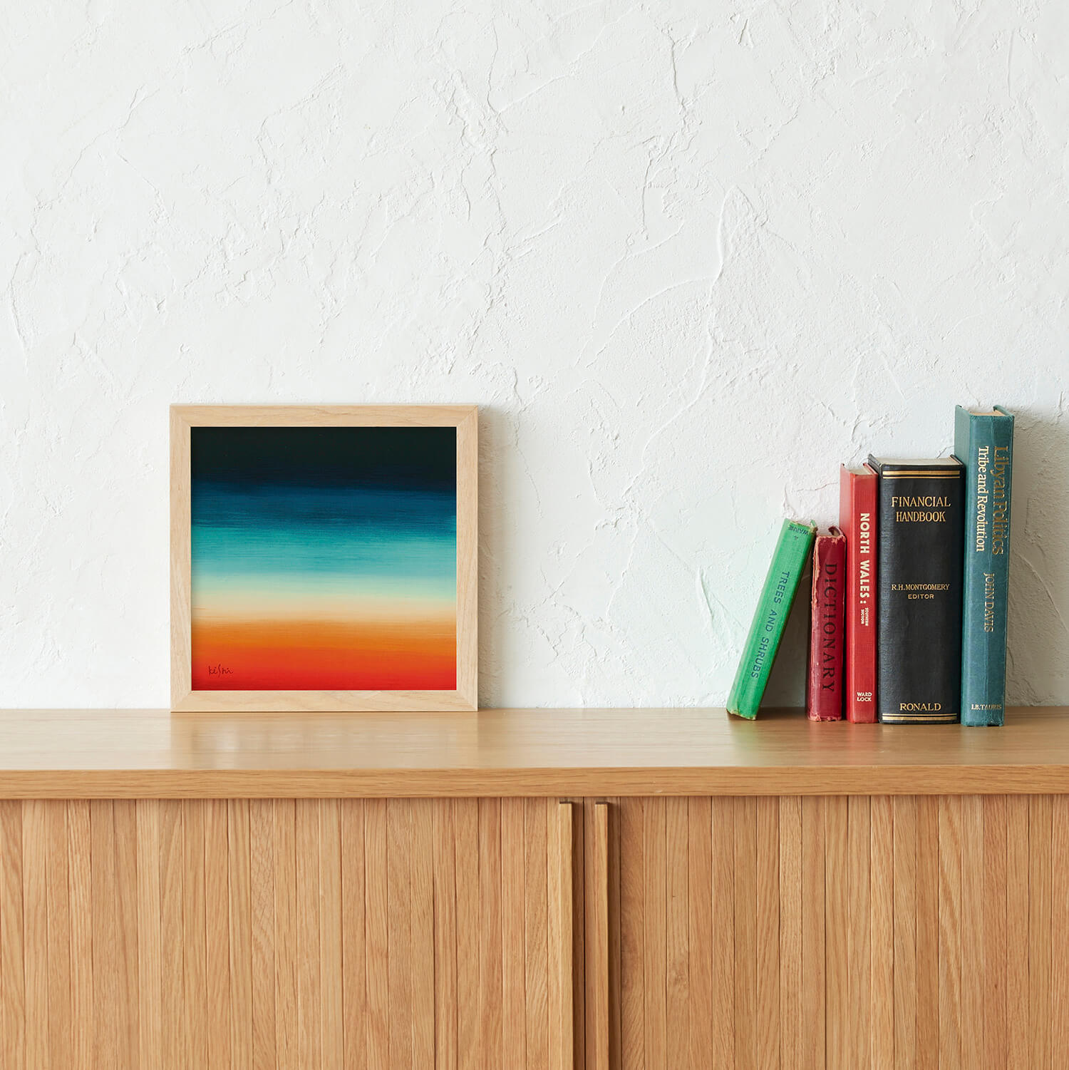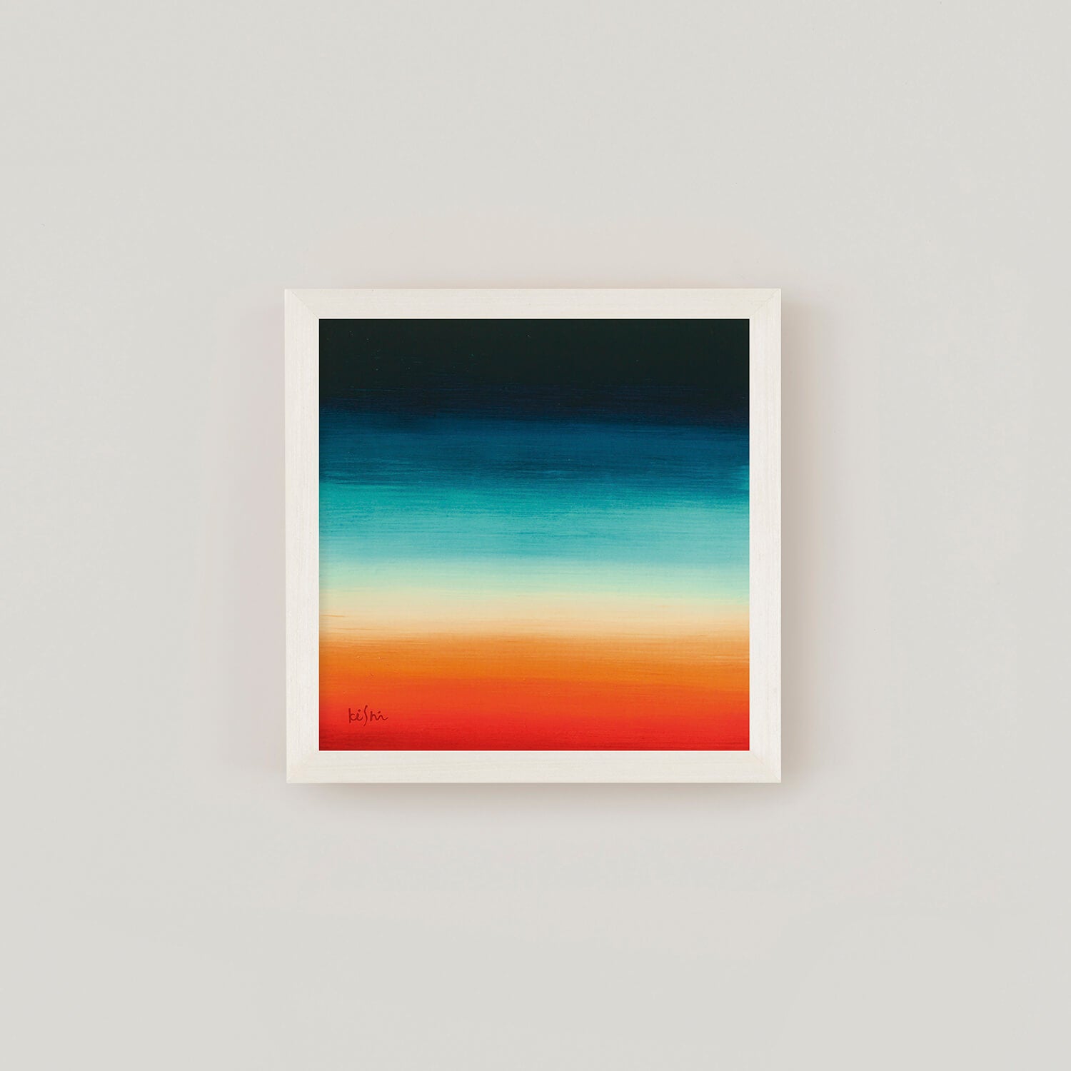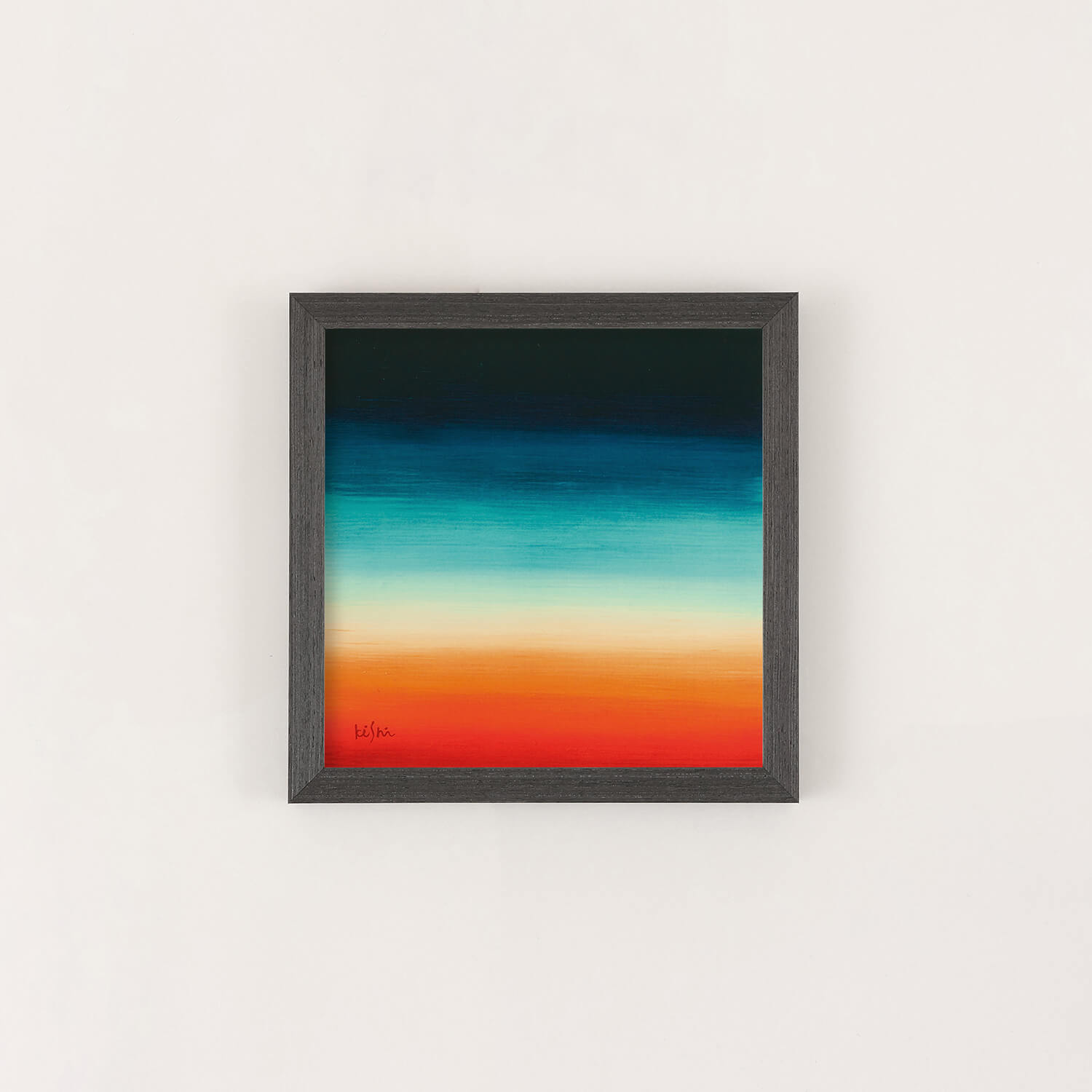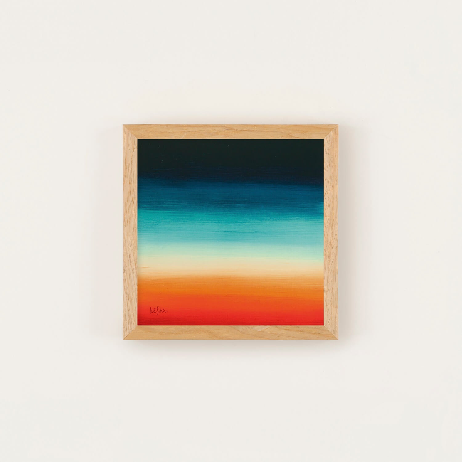 This piece features vibrant colors layered horizontally, creating a sense of visual warmth and depth. While abstract, it quietly evokes memories of landscapes that seem familiar, as if seen somewhere before.