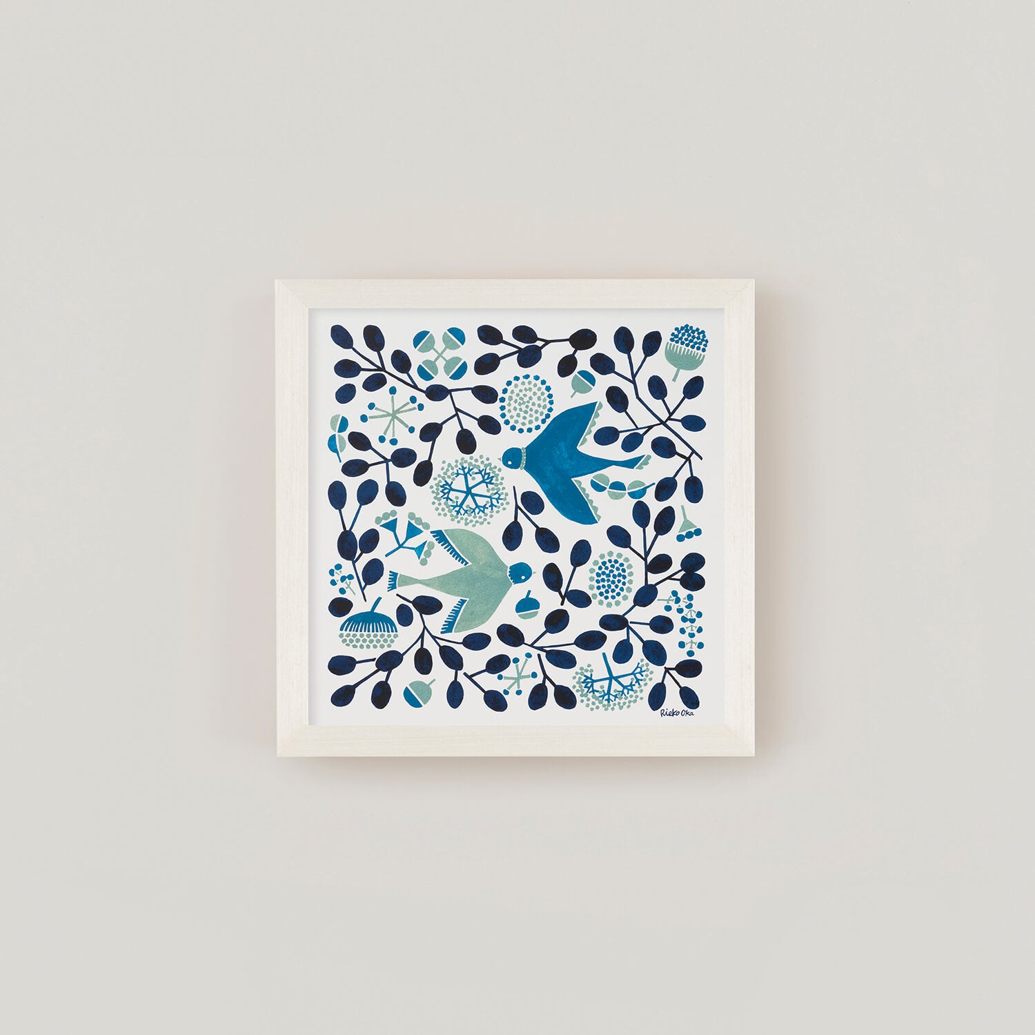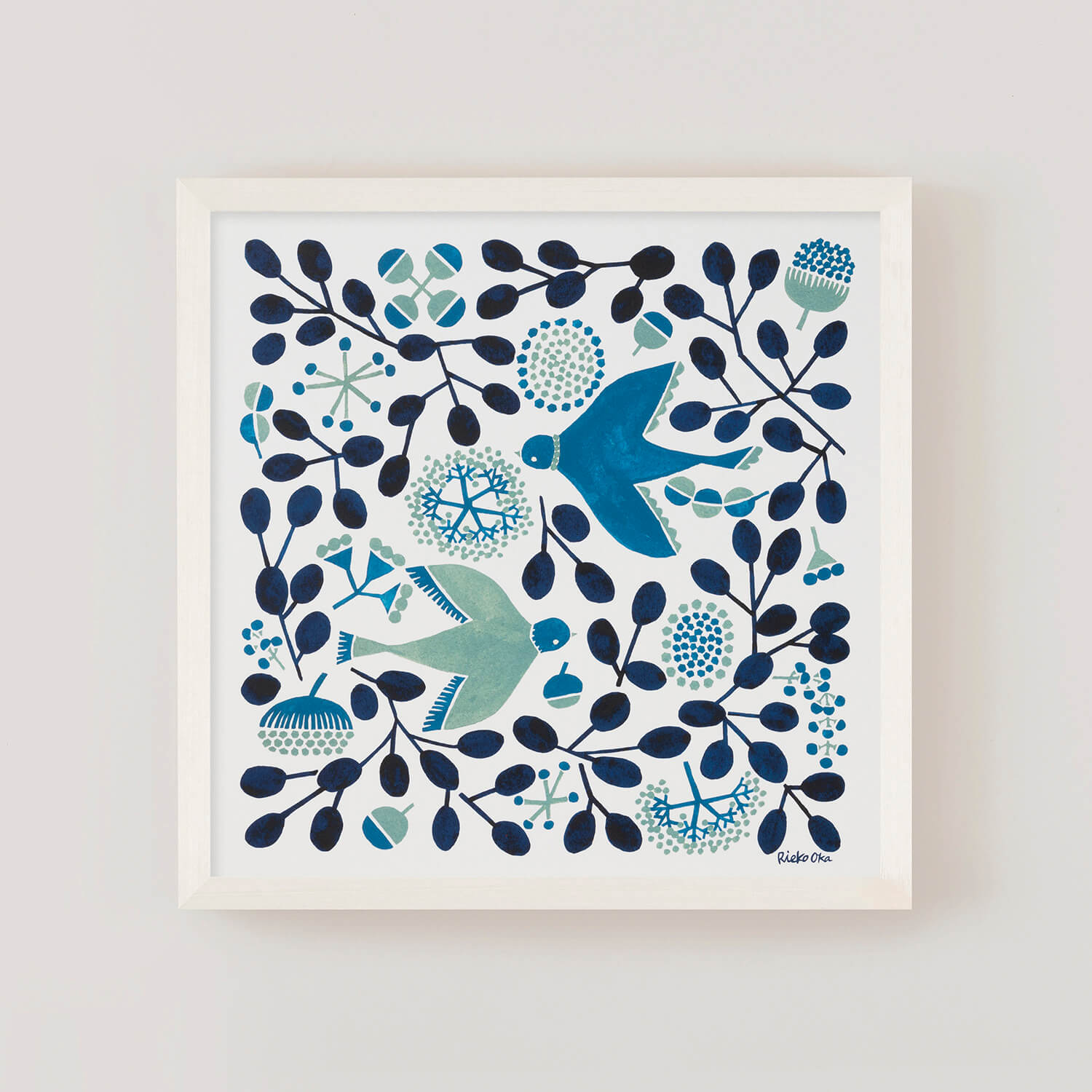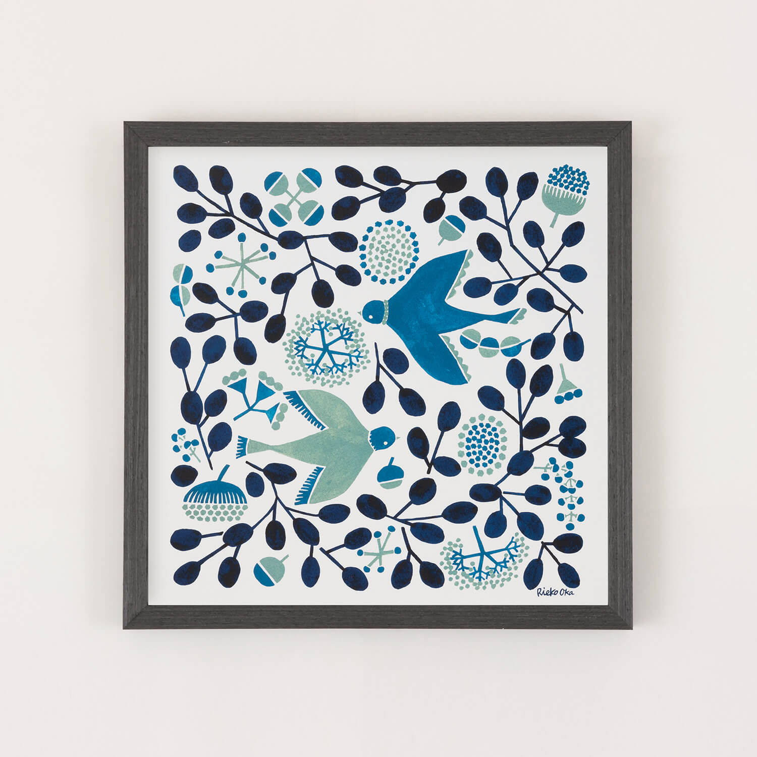 The design is based on the feeling the artist had when she heard a bird chirping in the forest at midnight and found it mysterious. The design, which was originally one of Rieko Oka's representative works and released as embroidery and printed fabric, has been newly drawn for the poster.