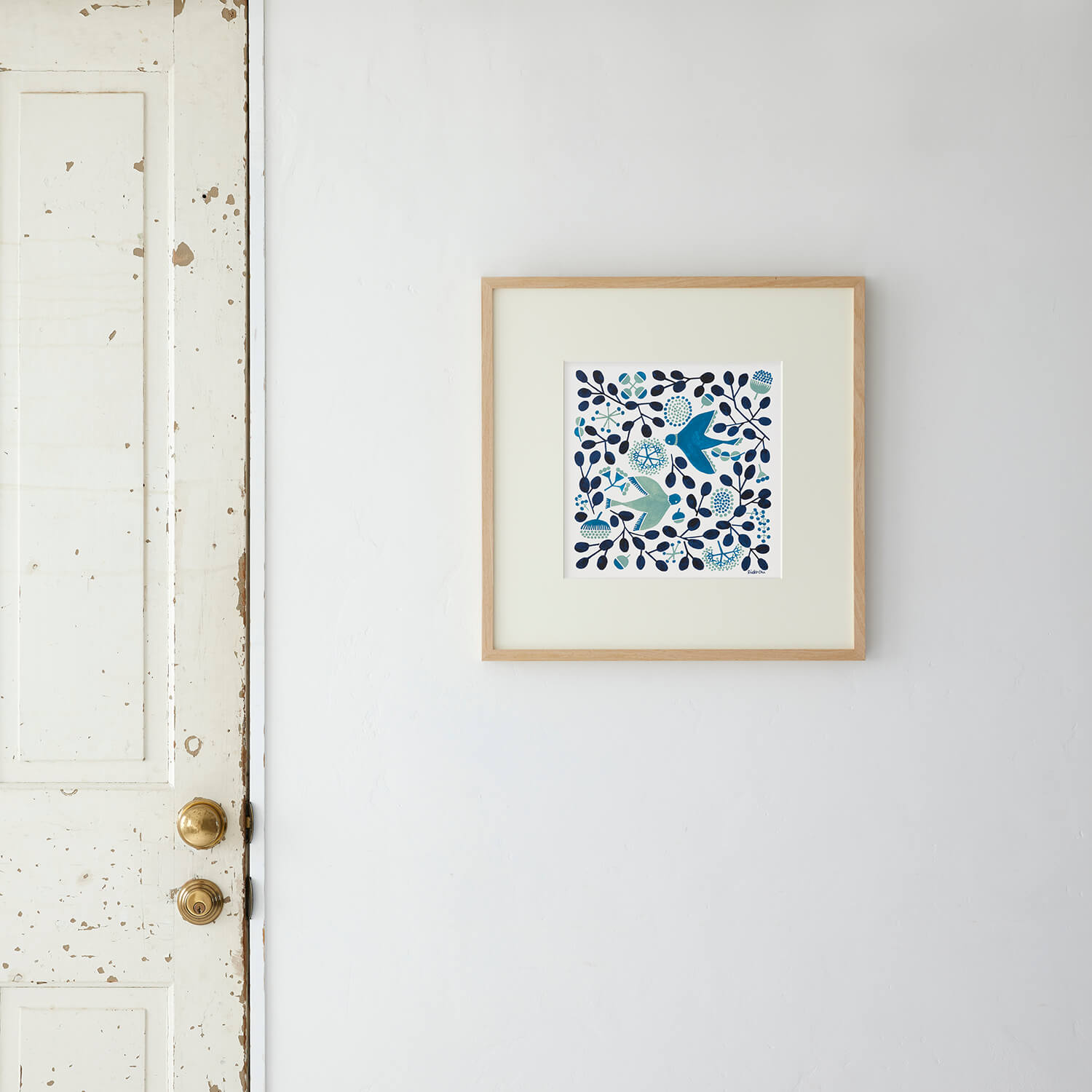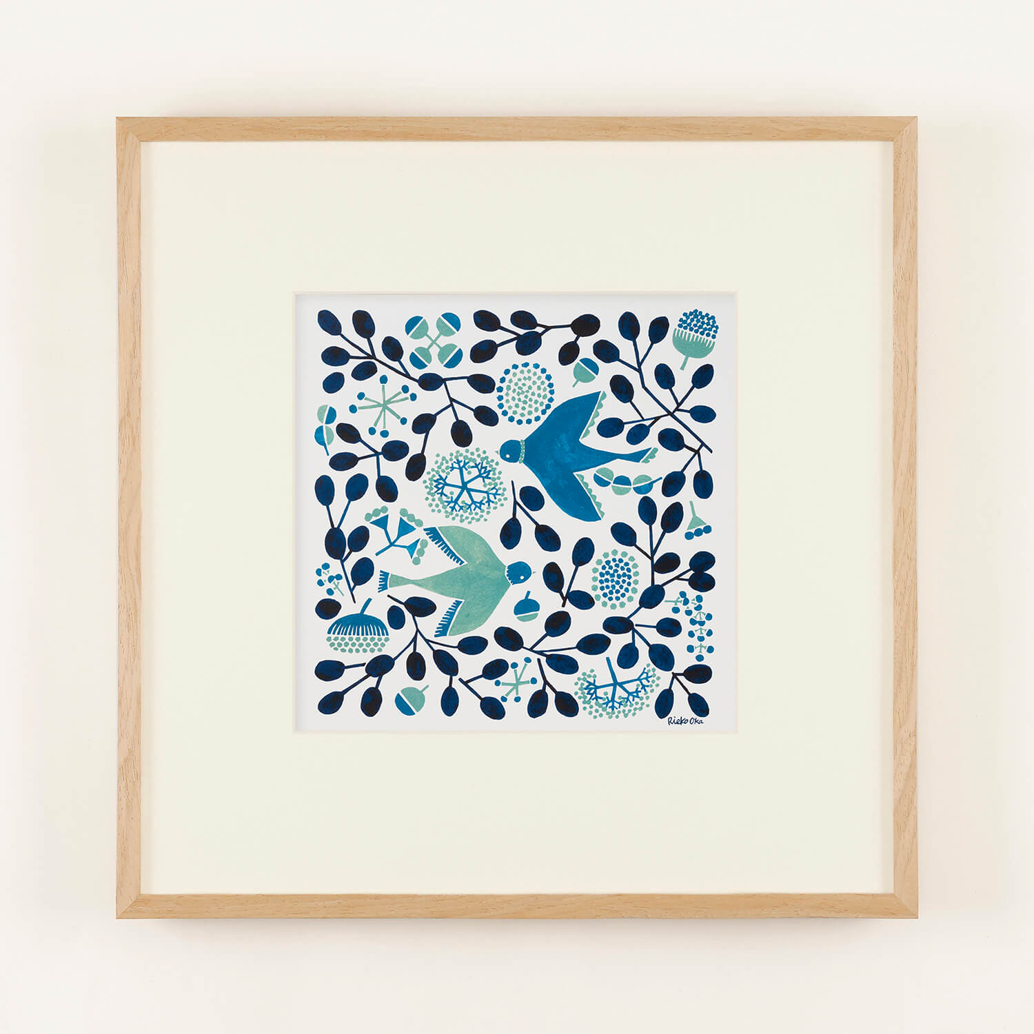 BIRD GARDEN (Bird Garden) blue frame 50+ with framed mat.