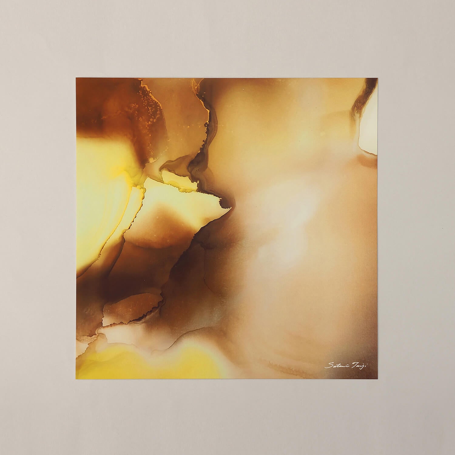 This work is created using a technique that involves pouring alcohol ink onto a canvas and utilizing the randomness that arises from the ink's spread, diffusion, and color mixing. It is a work by Tanji Satomi.