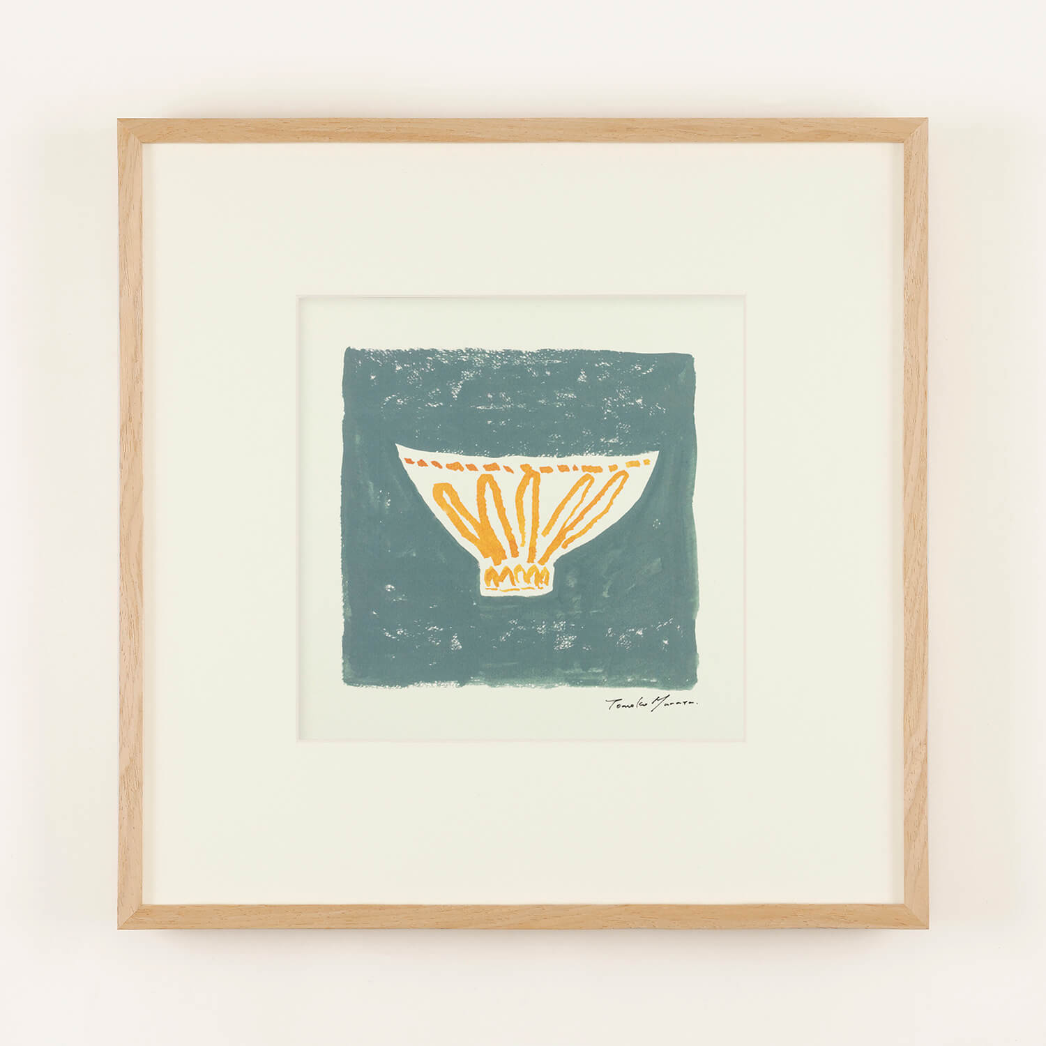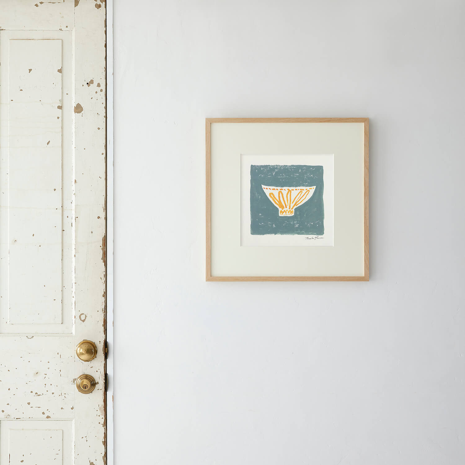 Cafe au lait bowl (blue) with frame 50+ and framed mat.