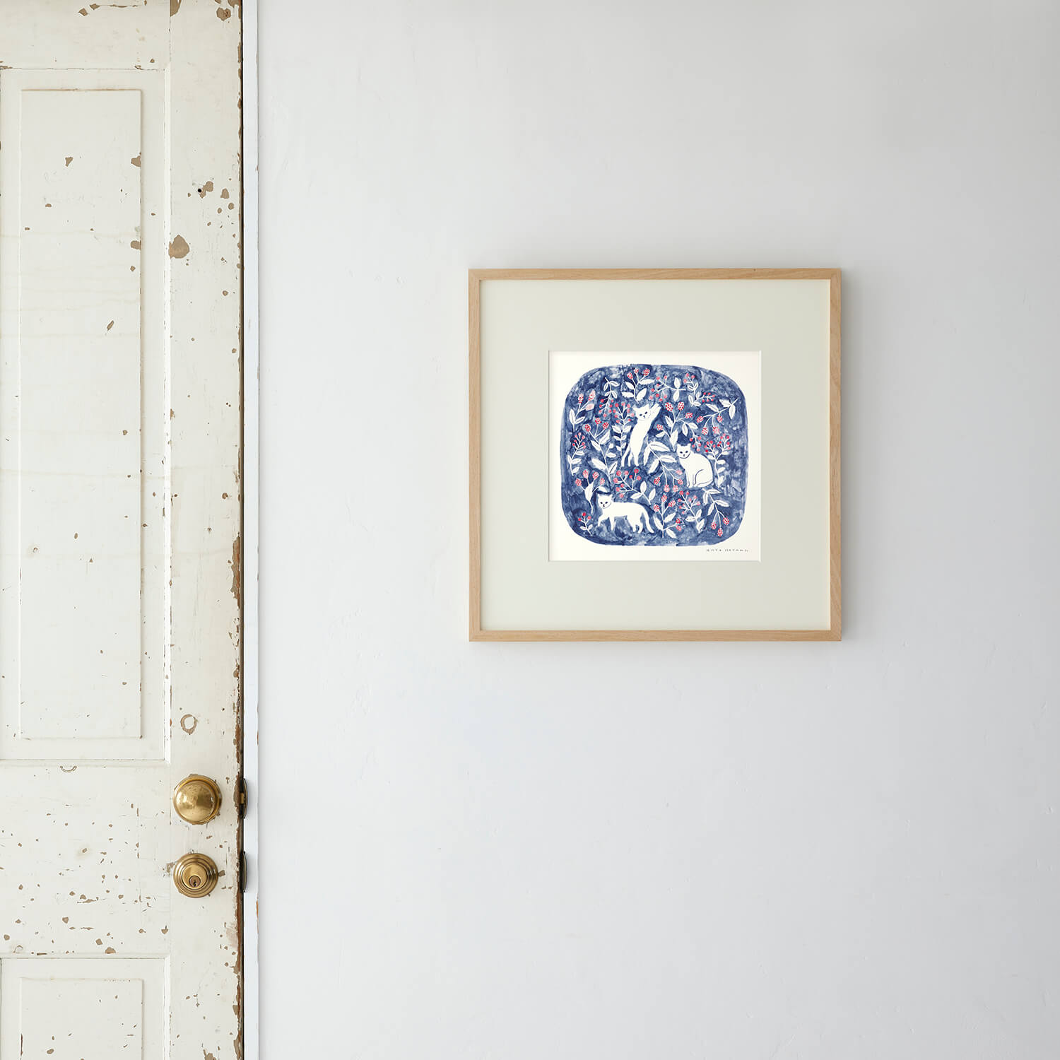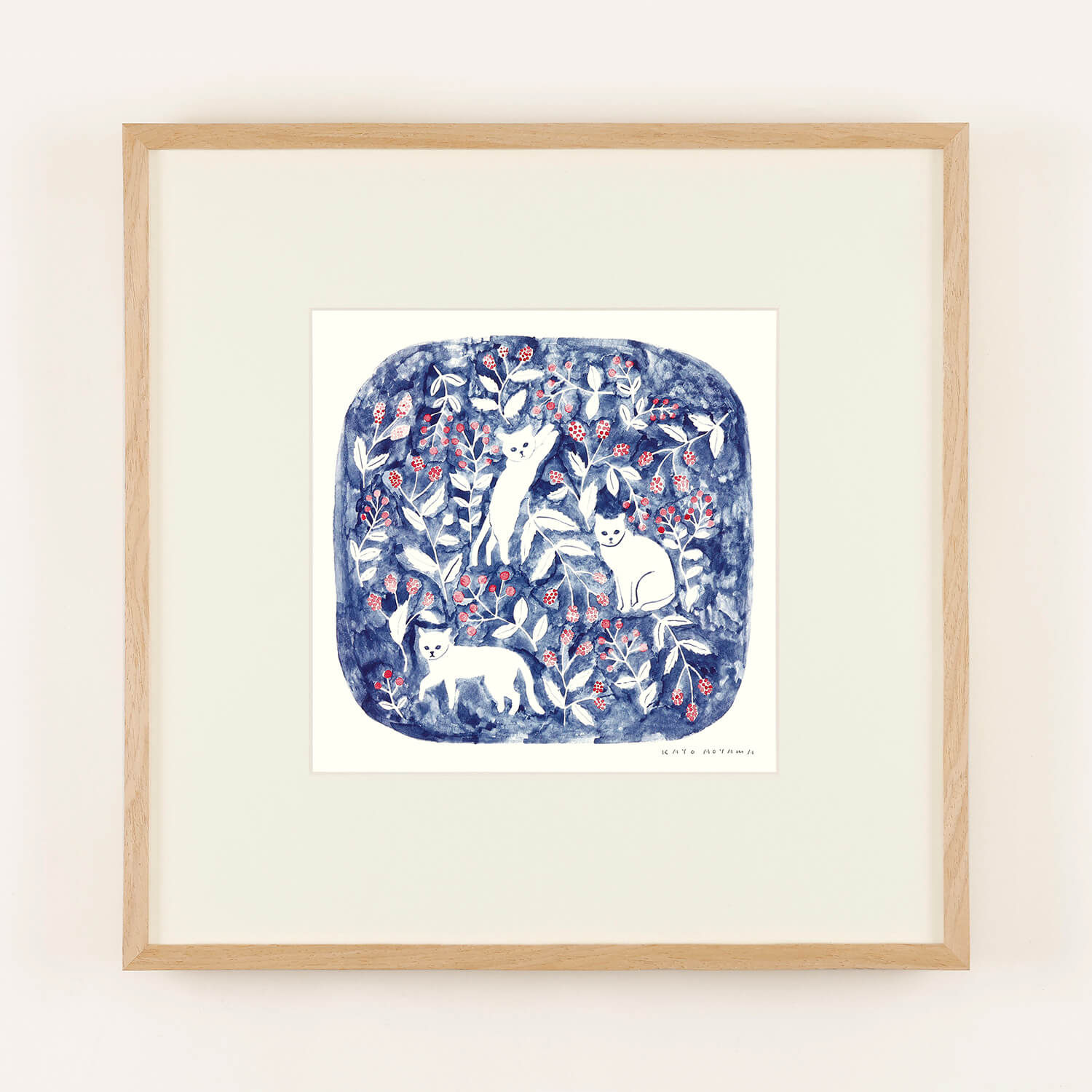 CAT AND BERRY (Cat and Berry) blue frame 50+ with framed mat.