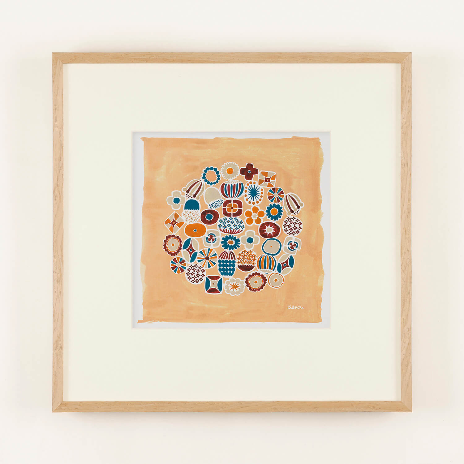 FLOWERS (apricot) framed print with 50mm frame and mat.