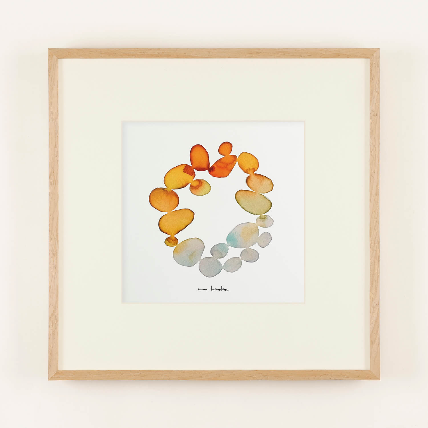 This piece features warm colors that connect as they form circles. The gentle rhythm, like light created by the watercolor's diffusion, is impressive.