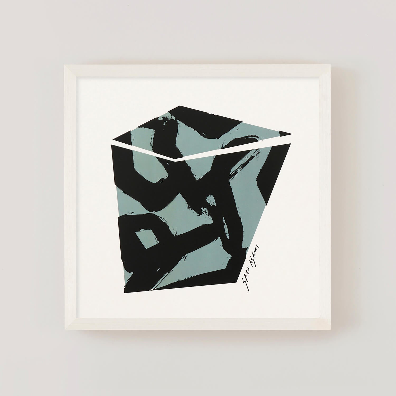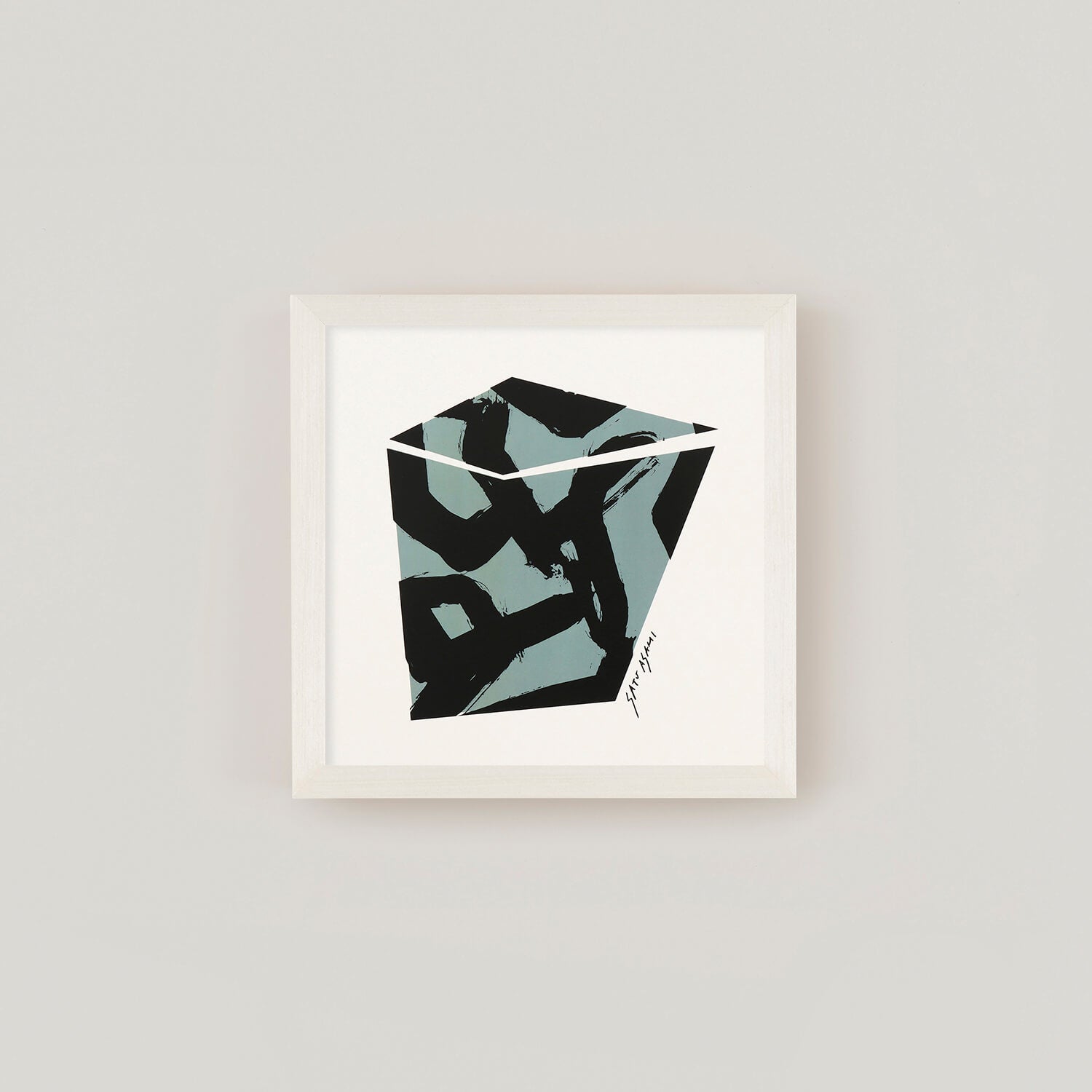 A poster featuring a maze-like geometric pattern, imagined as a box drawn with brushstrokes. Despite being a monochrome still life, it avoids being overly simple or modern, instead brimming with dynamism. The artist's signature is integrated into the design. A work by Asami Sato.