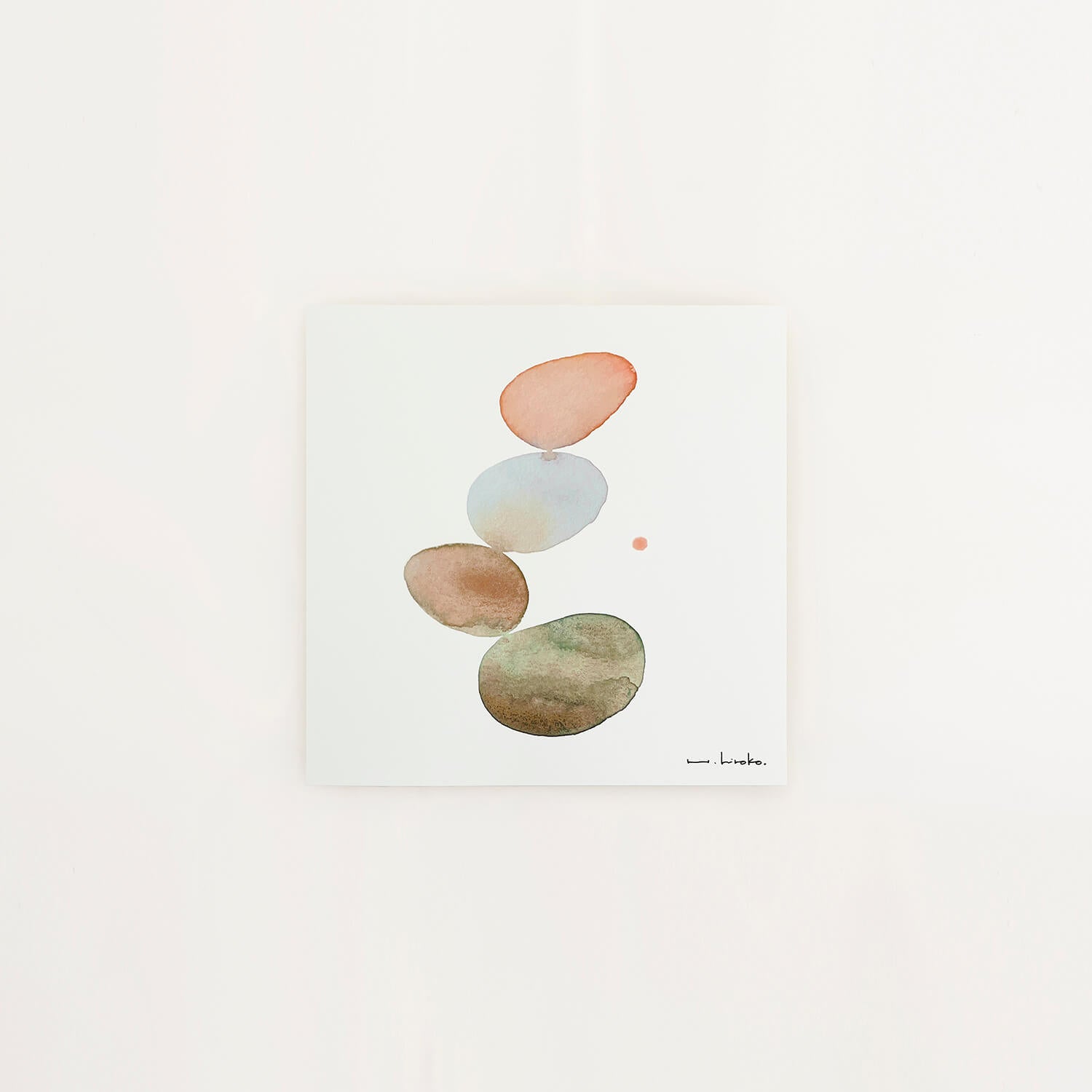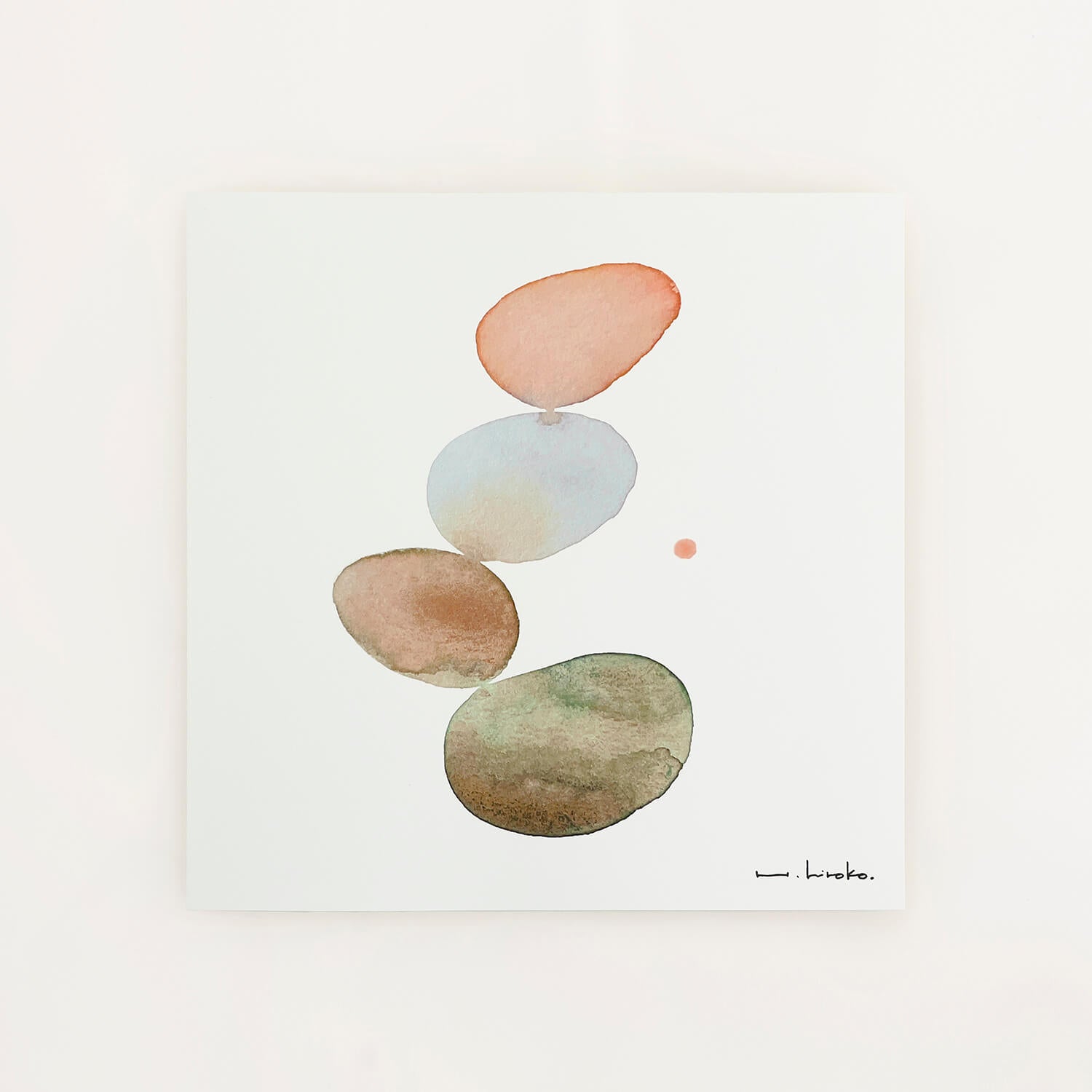 I created movement by deliberately making the rock balancing (the art of stacking rocks and stones) unbalanced. I wanted a light and soft image. (Comment by Hiroko Hashimoto)