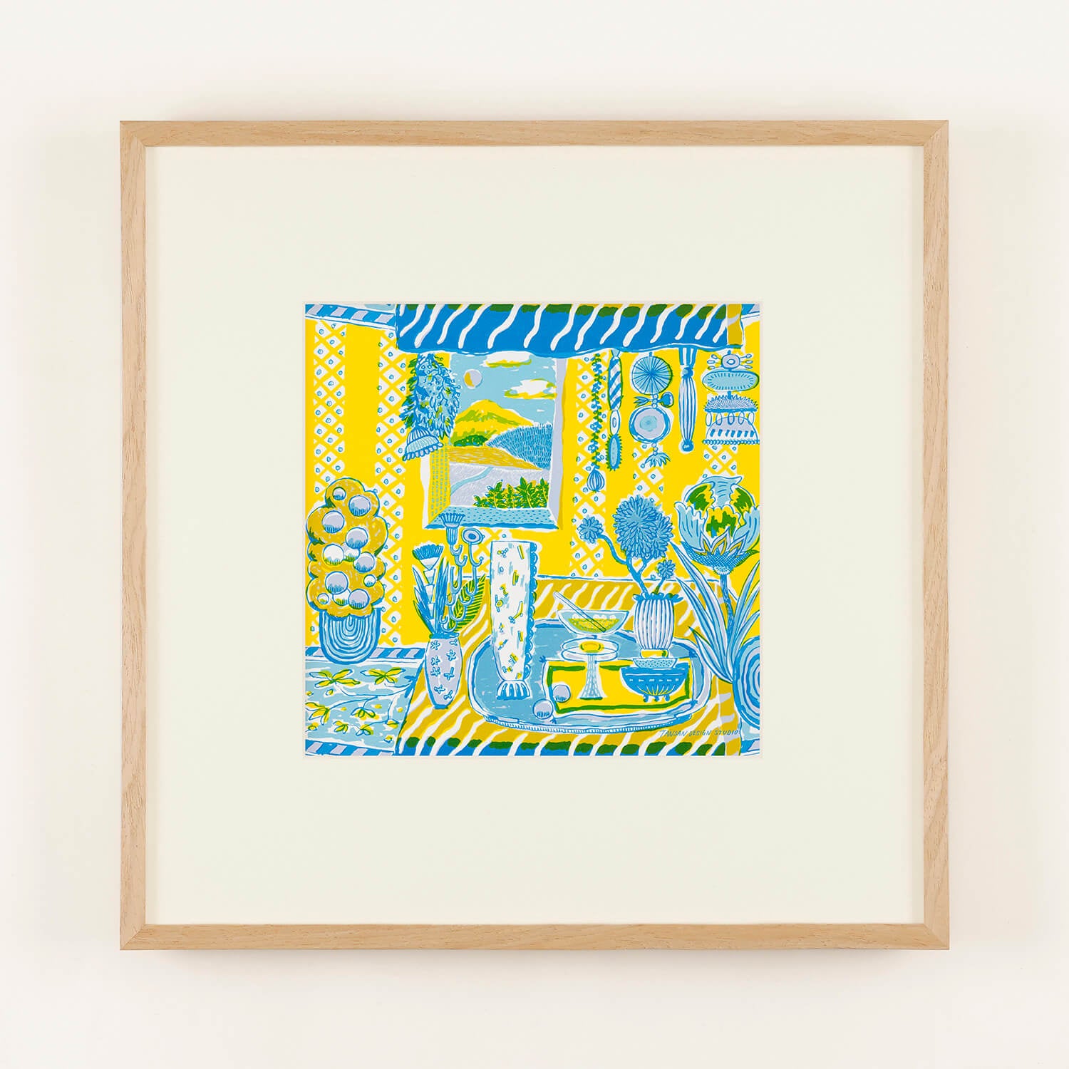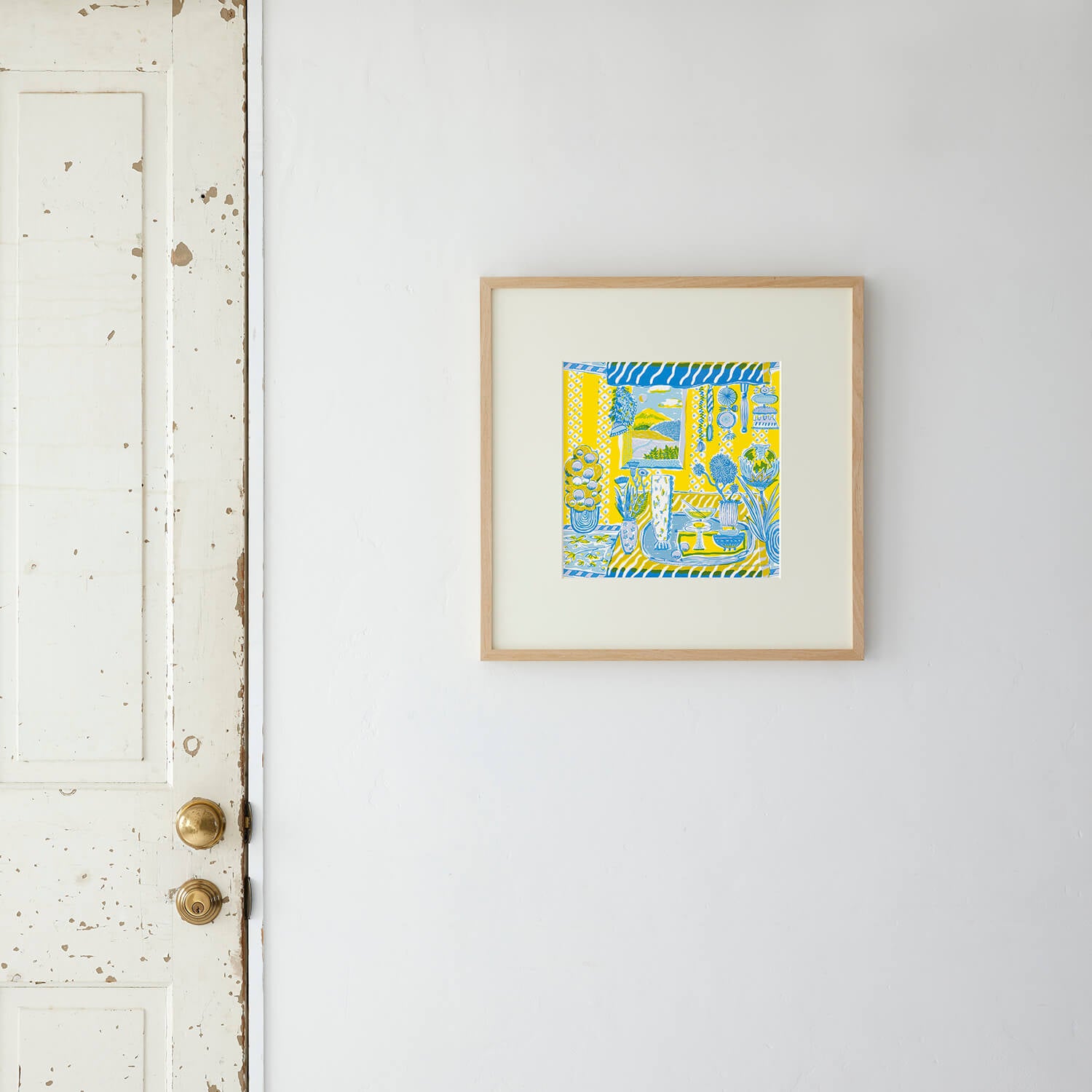 TEA TIME (yellow) Frame 50+ with matting and framing.