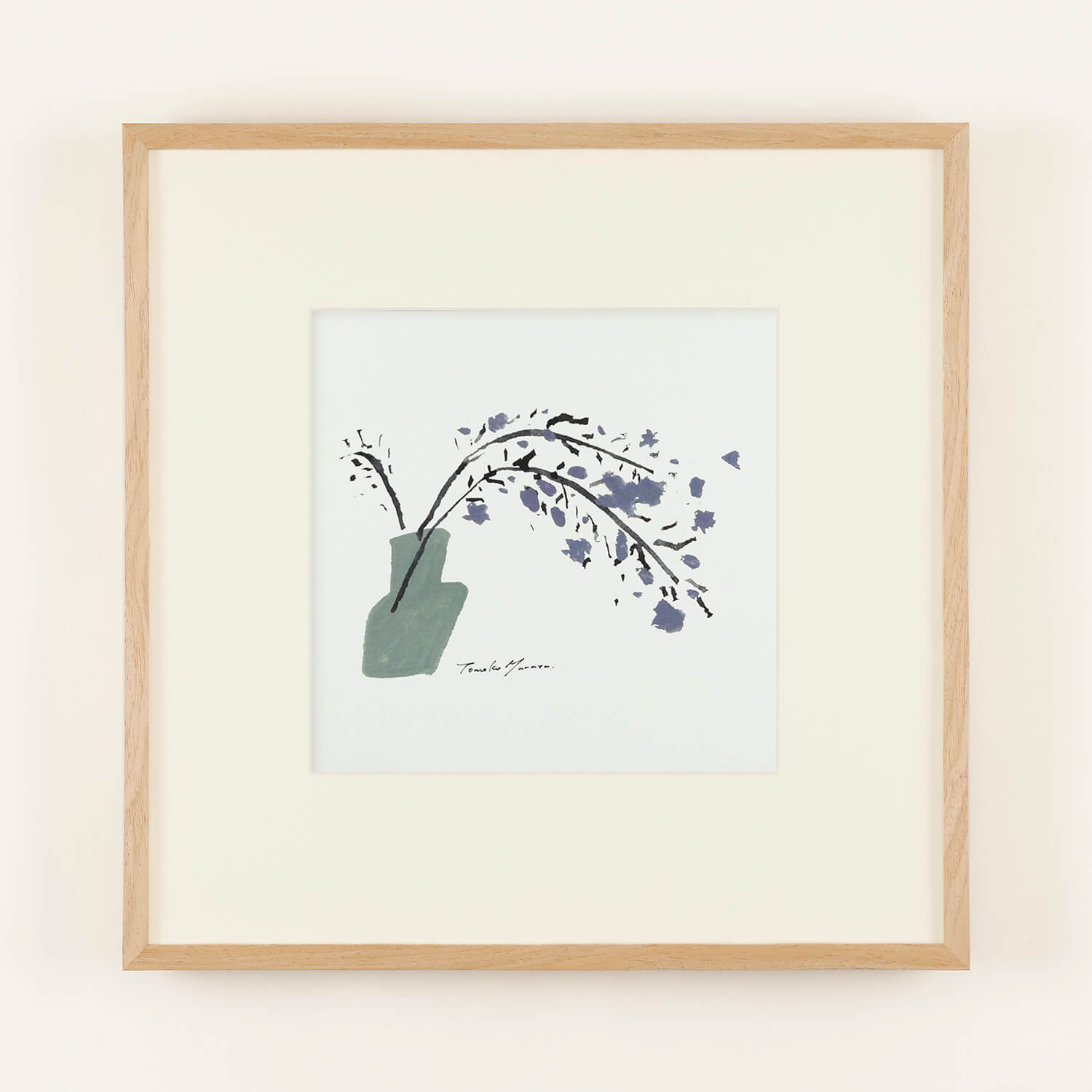 This artwork depicts weeping cherry blossoms in a vase. The distinctive layout that makes good use of negative space and the balance of the tilted vase are excellent, and the art conveys the sense of Murata Tomoko's style, including the colors.