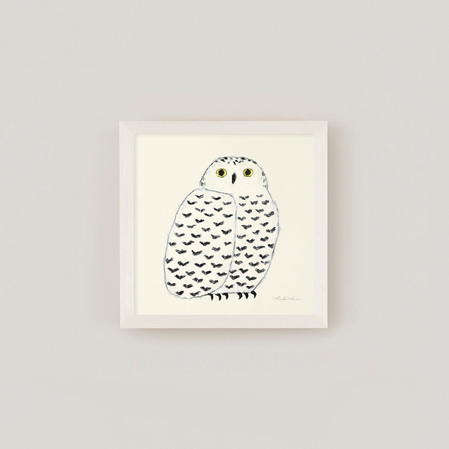 北極圏に生息するシロフクロウは、翼を広げると2m近くにもなる世界最大のフクロウです。近年の温暖化によって絶滅危惧種に指定されましたが、クレヨンで描かれたポスターとなって、みる人を癒してくれるでしょう。米津祐介さんの作品。