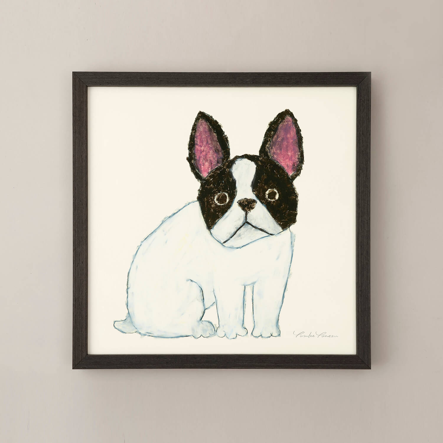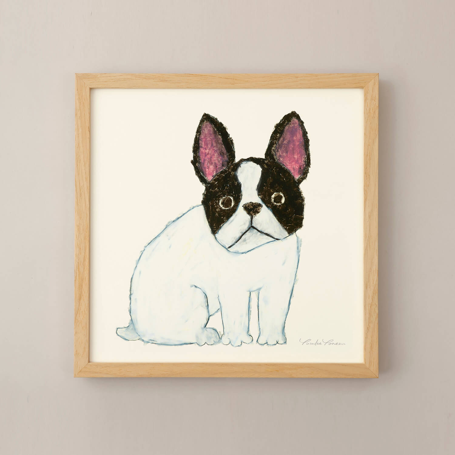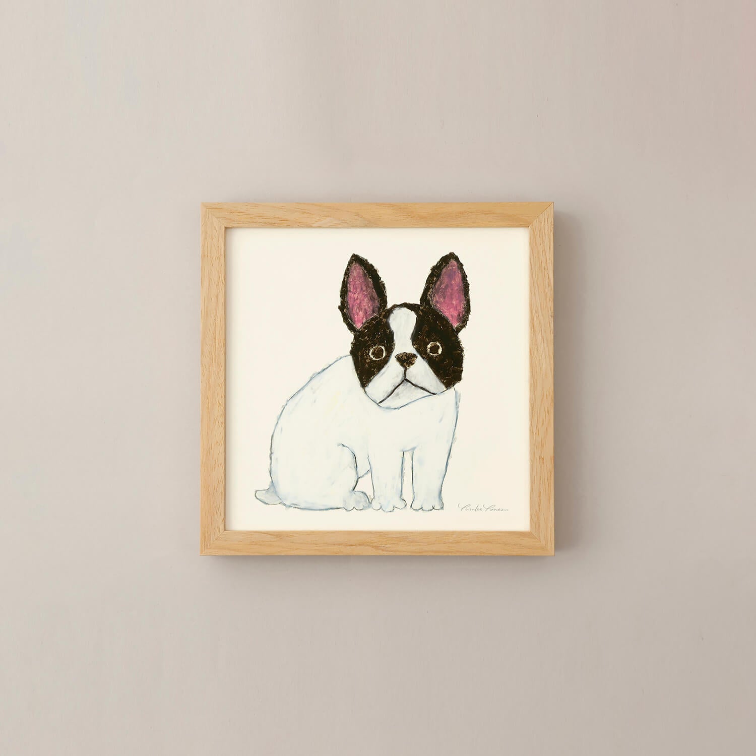 コンパクトなサイズと愛らしい外見、忠実で人懐っこい性格から、世界中で人気のフレンチブルドッグ。そんなフランス原産の小型犬をクレヨンで描いたこの作品は、米津祐介さんのアイコンのような存在です。