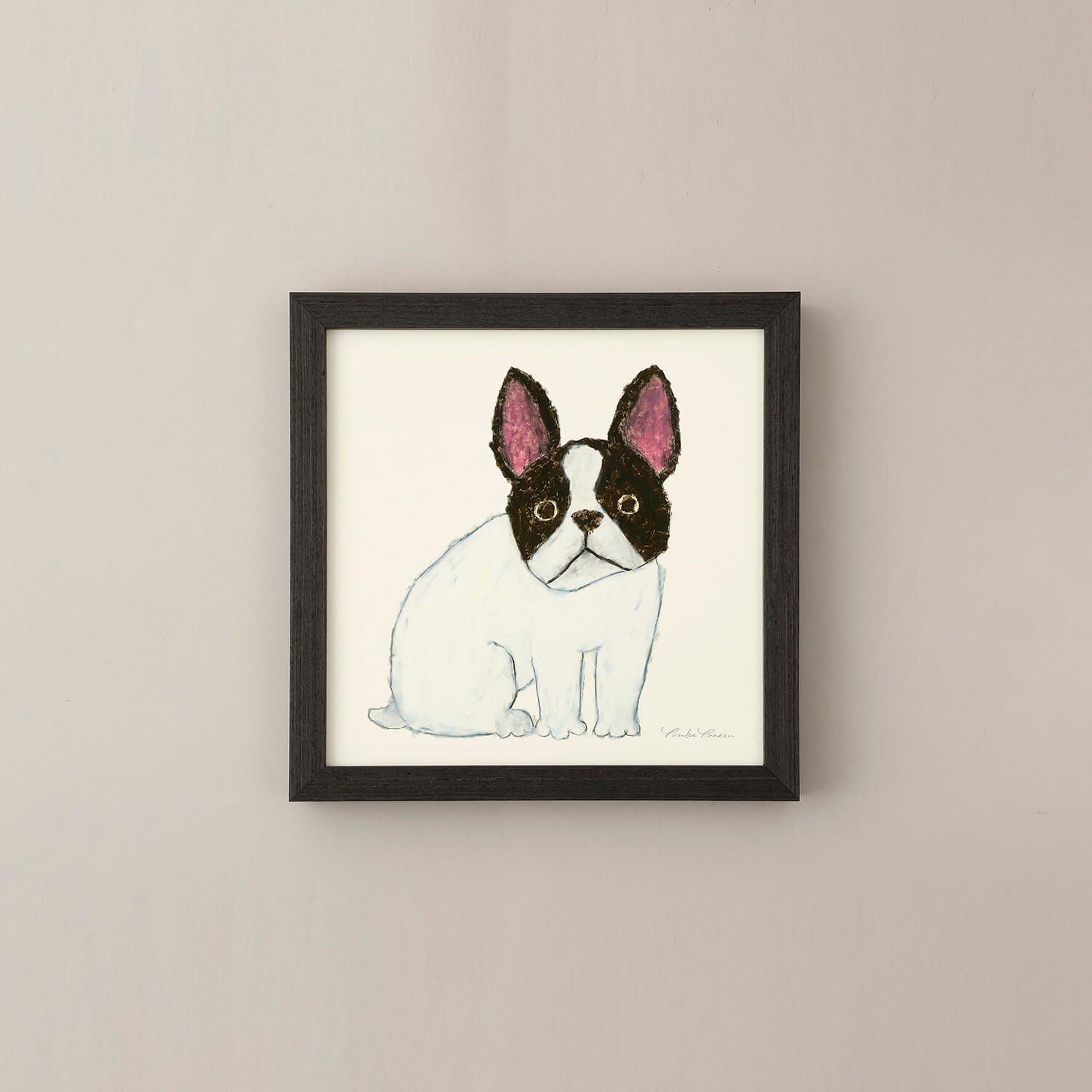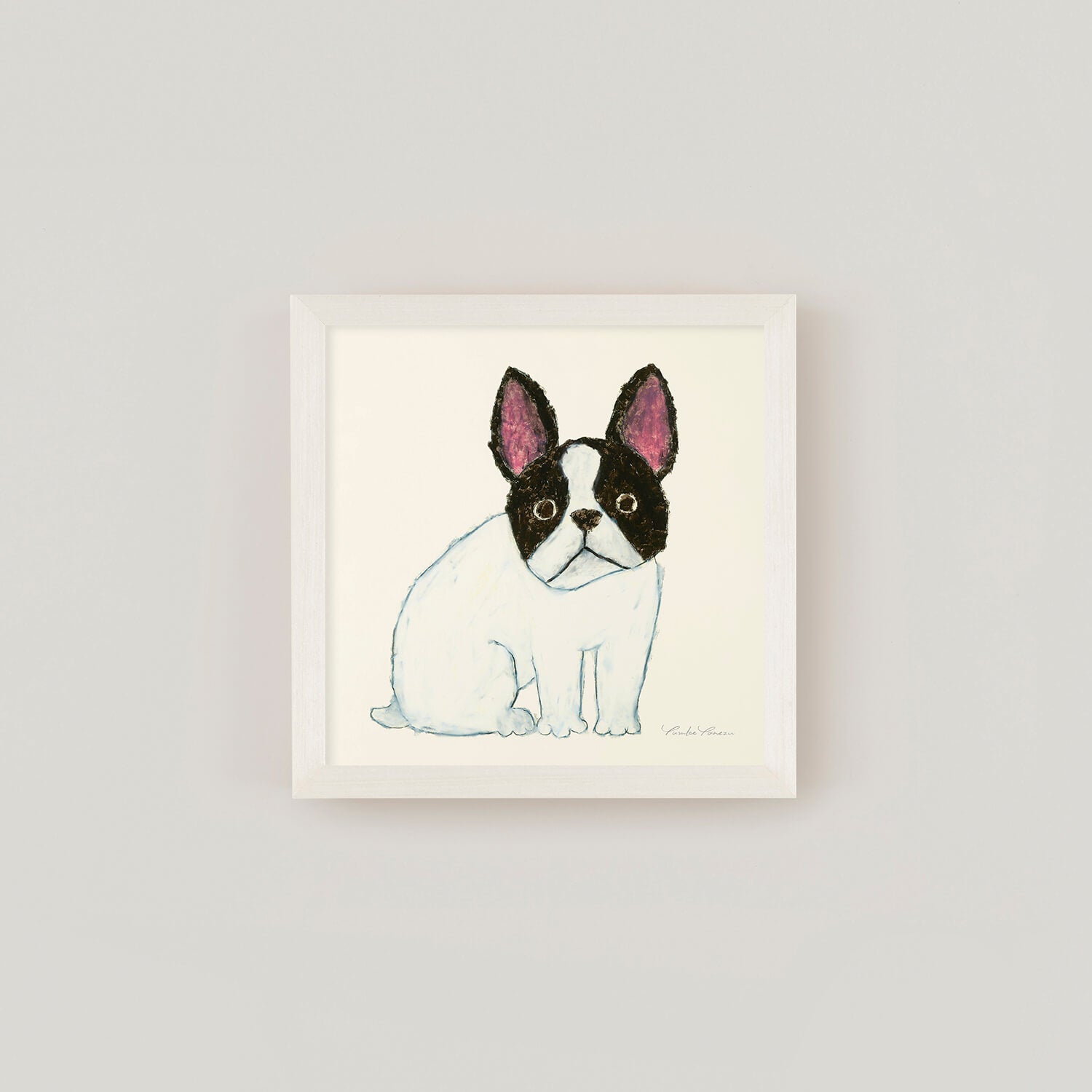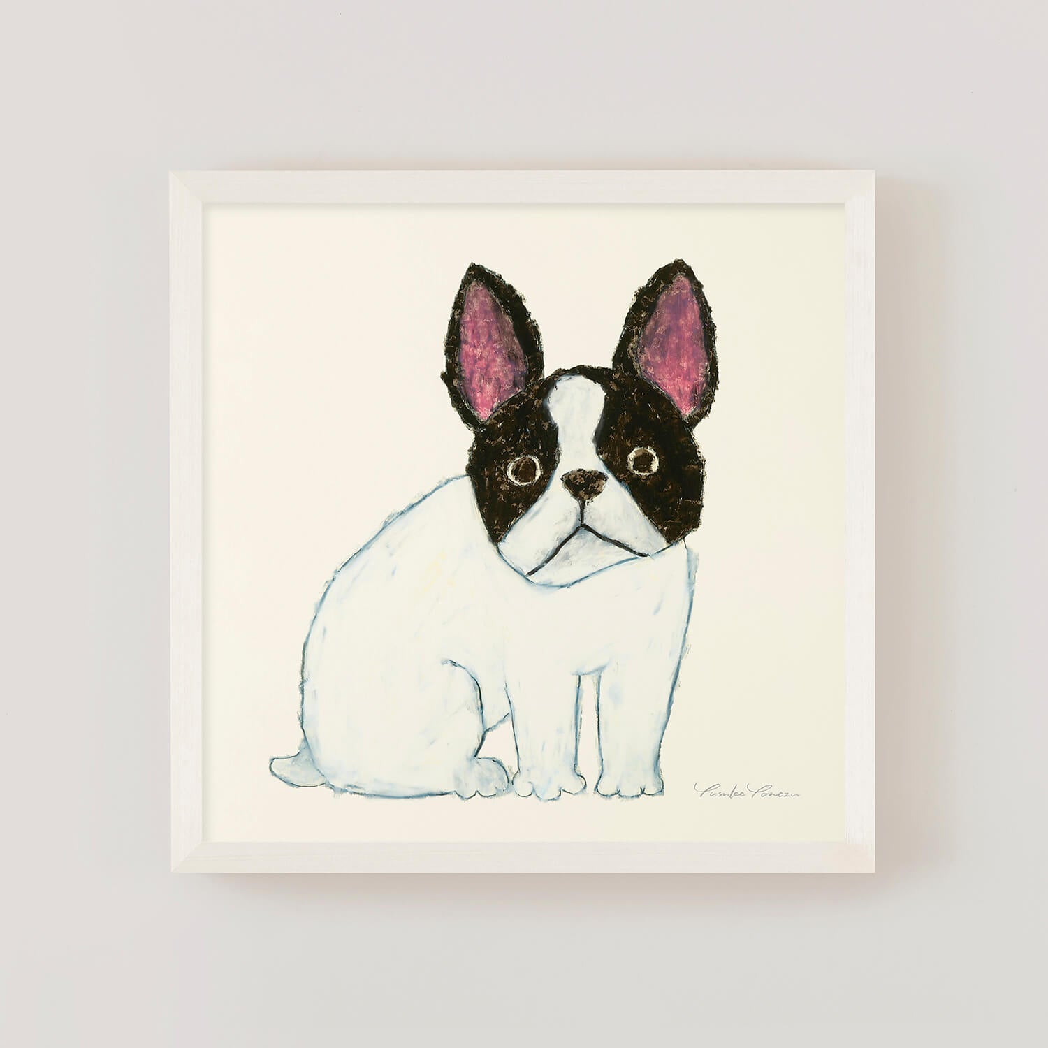 コンパクトなサイズと愛らしい外見、忠実で人懐っこい性格から、世界中で人気のフレンチブルドッグ。そんなフランス原産の小型犬をクレヨンで描いたこの作品は、米津祐介さんのアイコンのような存在です。