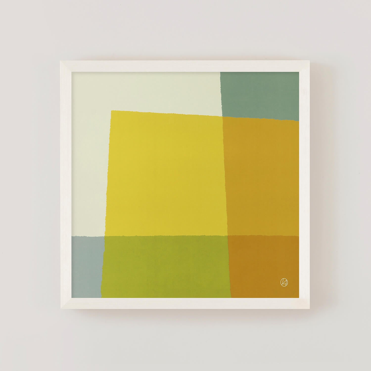 色の重ね塗りが特徴の作品。プリズムによって分解された虹色のように、作者の目を通して分散された色が重なり、絵として表現されたアートです。クォーターリポートの作品。