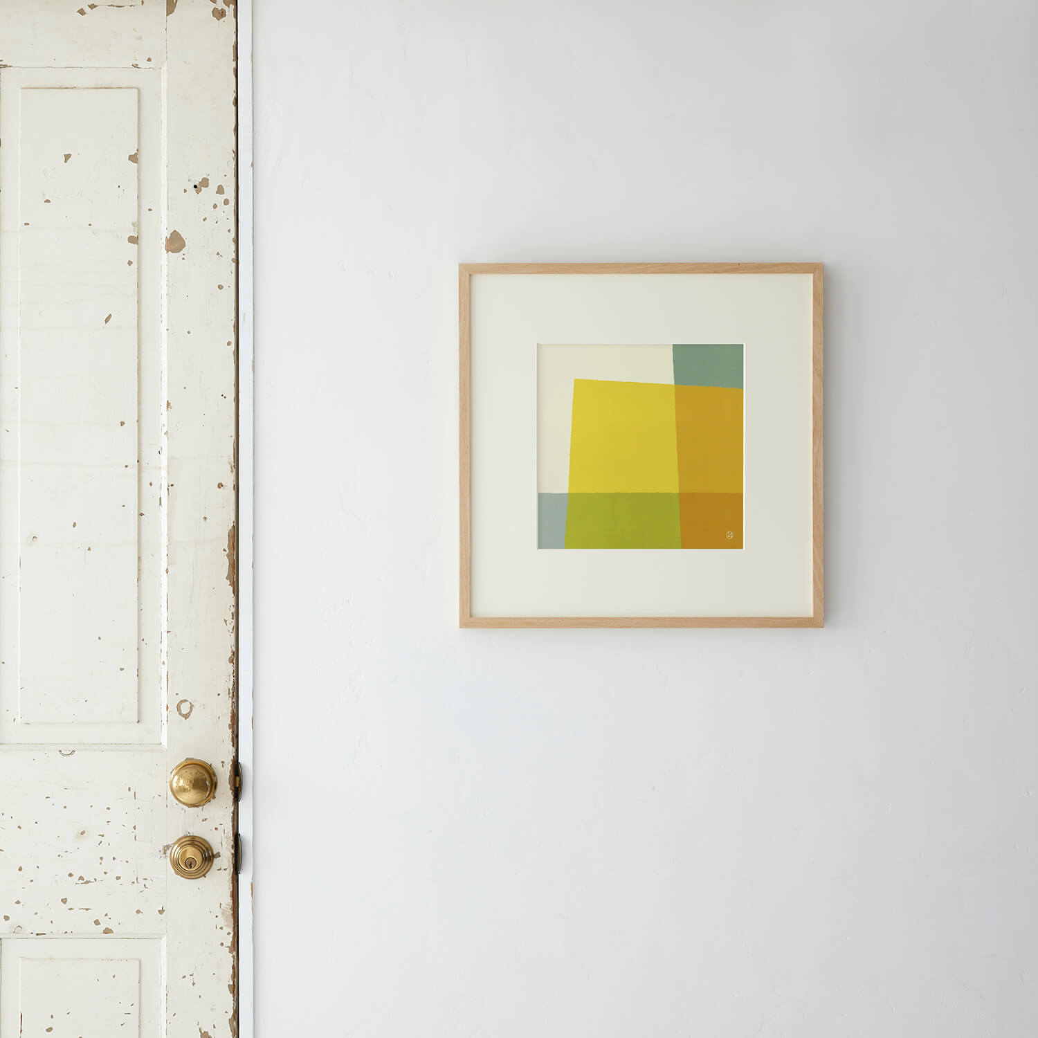色の重ね塗りが特徴の作品。プリズムによって分解された虹色のように、作者の目を通して分散された色が重なり、絵として表現されたアートです。クォーターリポートの作品。