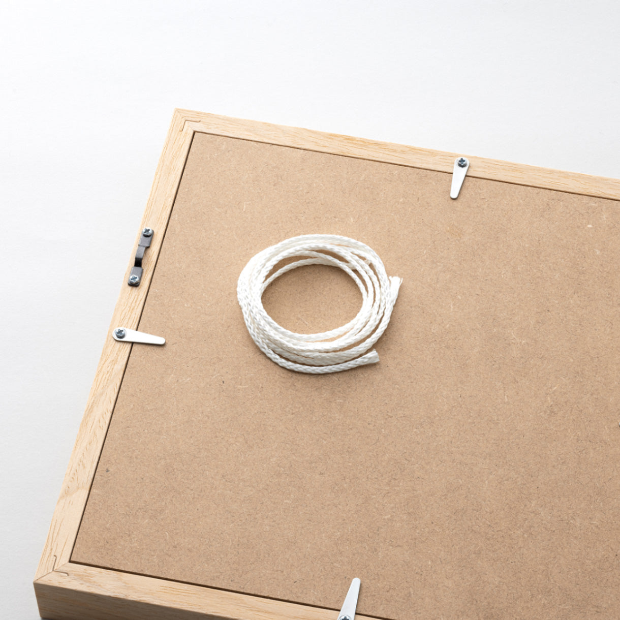乾燥や湿気による形状変化を抑えるため松の木を加工したパイン材を芯材に使用し、木目が綺麗で反りや割れも少ない突板を巻いたオリジナルフレーム。