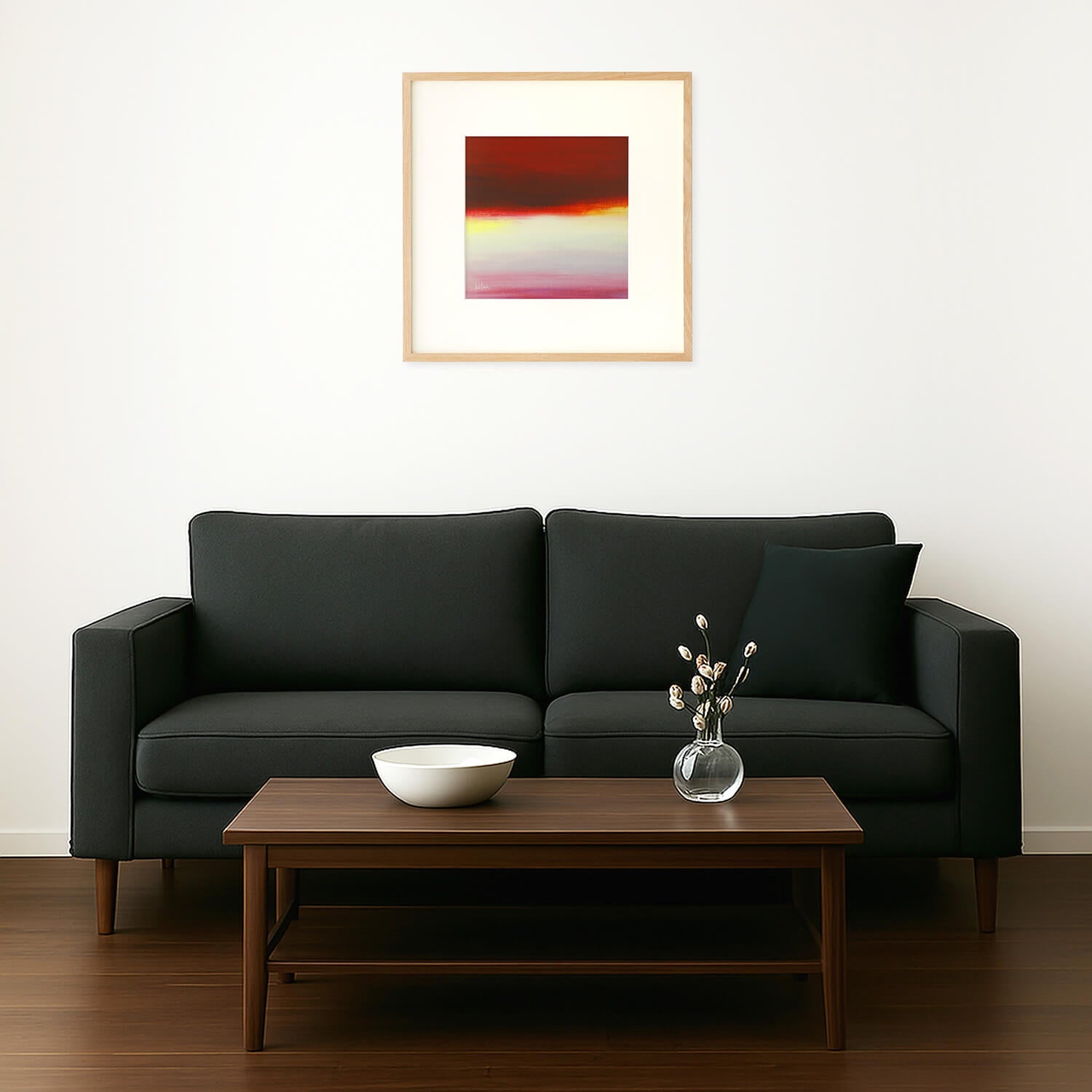 強くにじむ色の層が、静かに心の奥を揺らすような一枚。境界は曖昧なのに、感情の輪郭だけがくっきりと浮かび上がるような不思議さがあります。