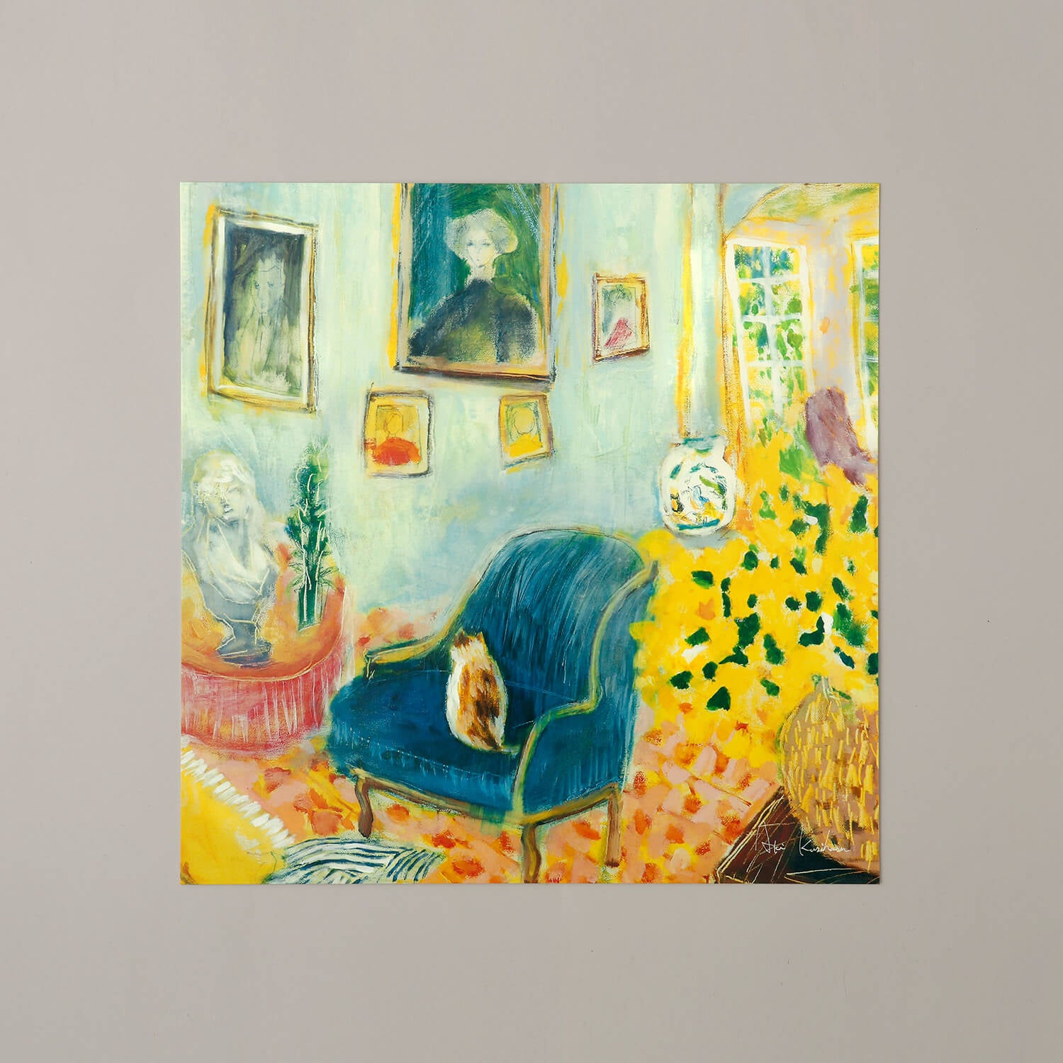 椅子の上で壁を見つめるのは、肖像画の女性の愛猫でしょうか。猫が座っているのは、飼い主愛用の椅子なのかもしれませんね。調度品のクラシックなディテールが、高貴な印象を抱かせてくれる栗原あきさんの作品です。