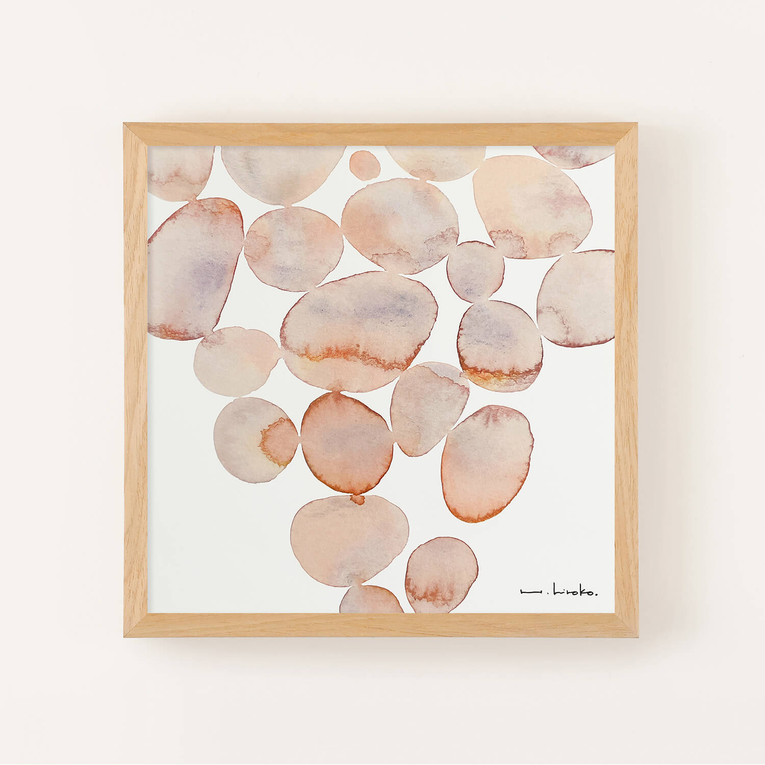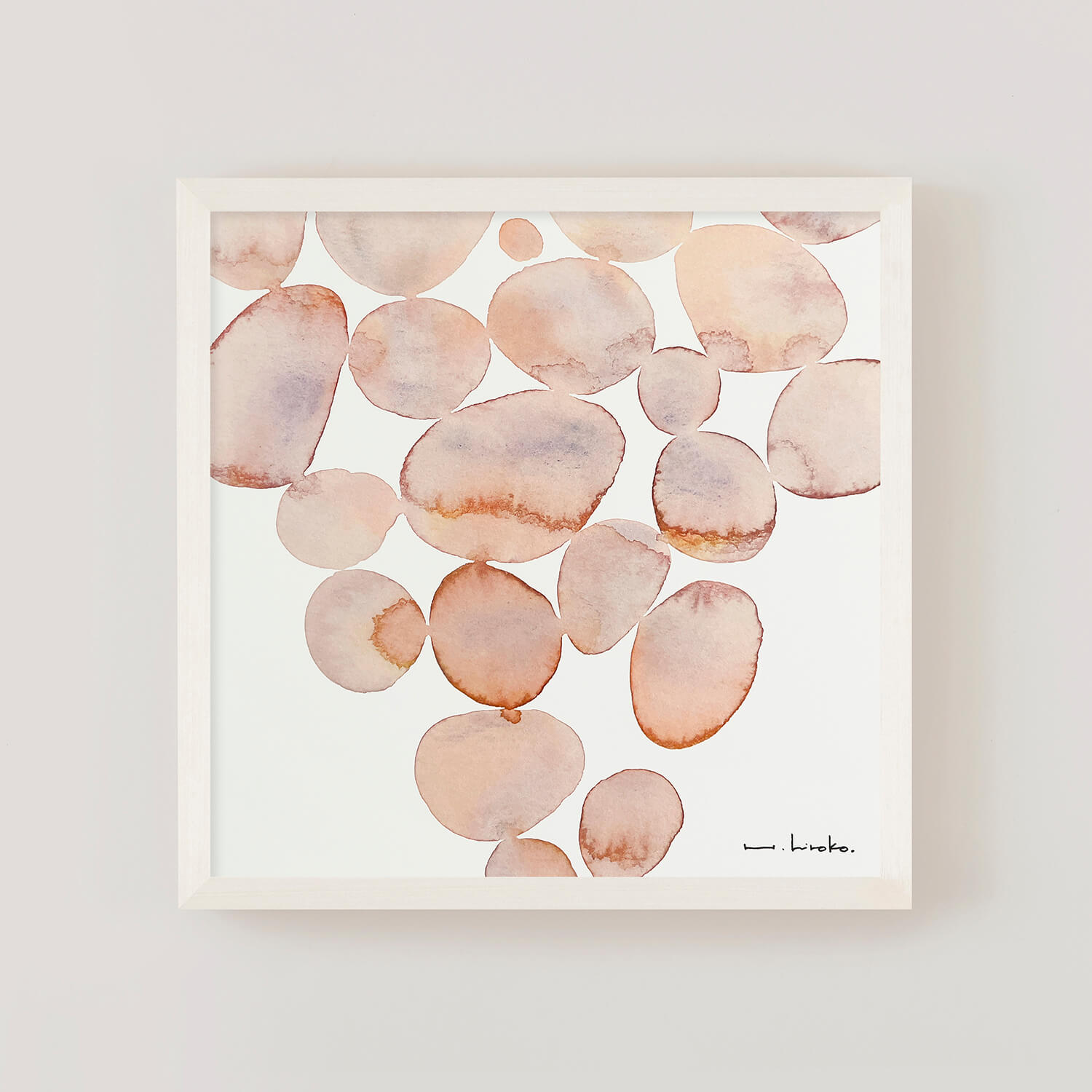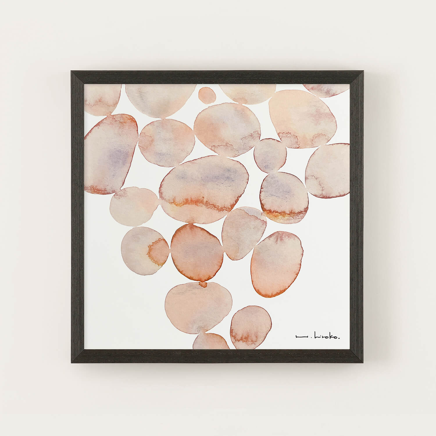 にじみのあるやわらかなかたちが連なり、やさしい流れを感じさせる作品。ハシモトさんならではの繊細な色使いが、静かな広がりを生み出しています。