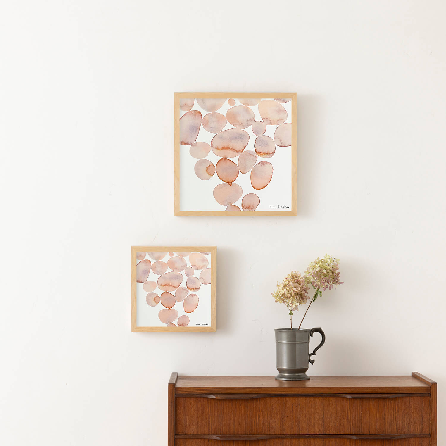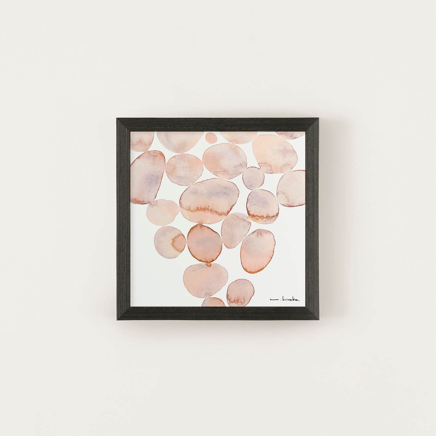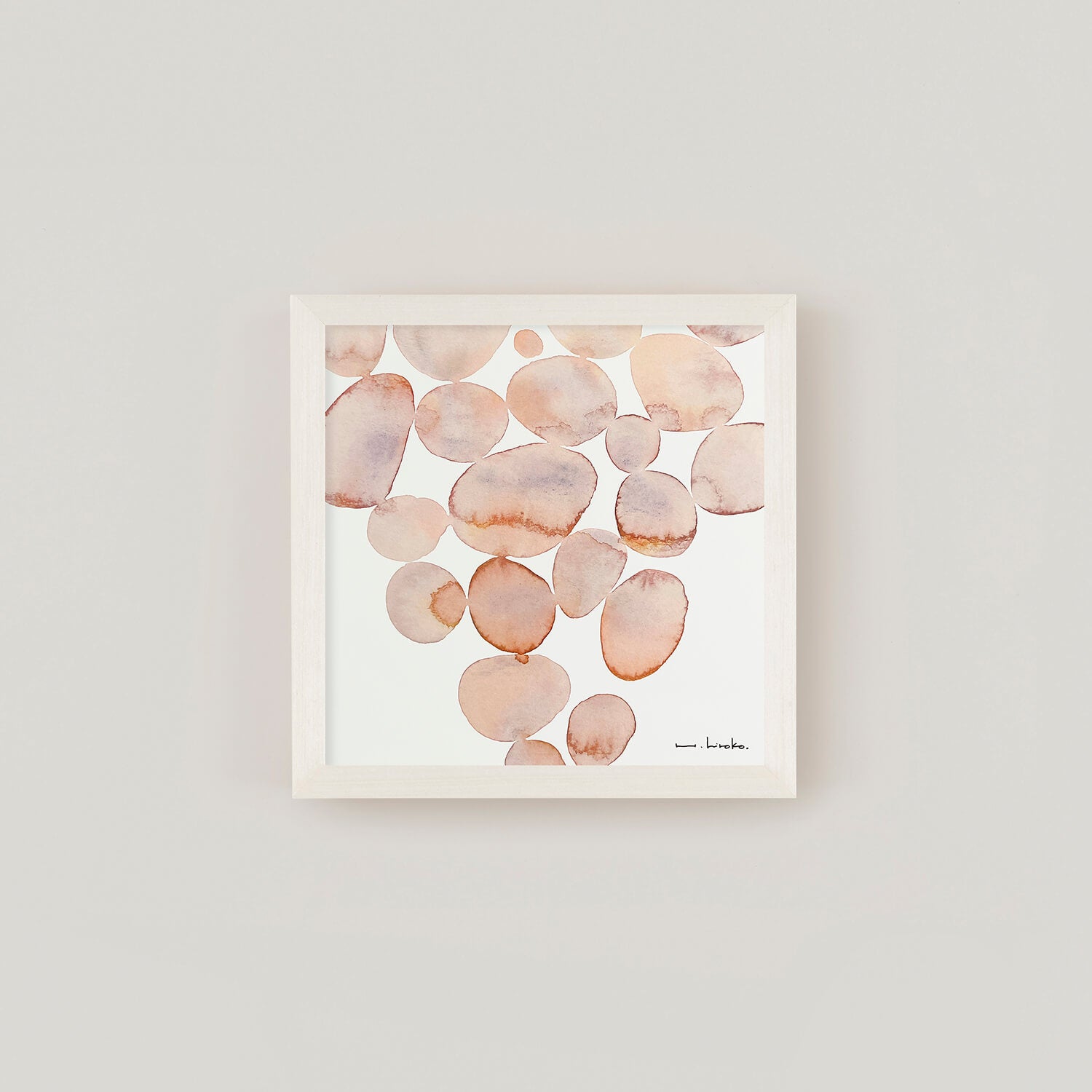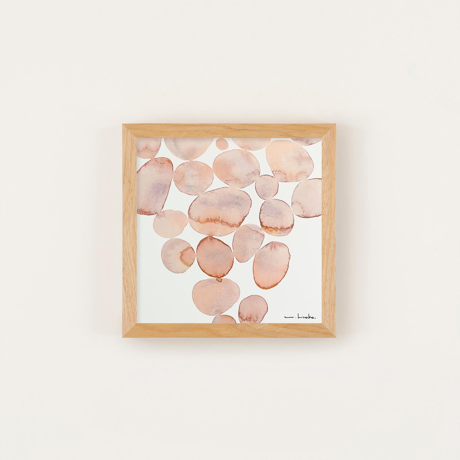 にじみのあるやわらかなかたちが連なり、やさしい流れを感じさせる作品。ハシモトさんならではの繊細な色使いが、静かな広がりを生み出しています。