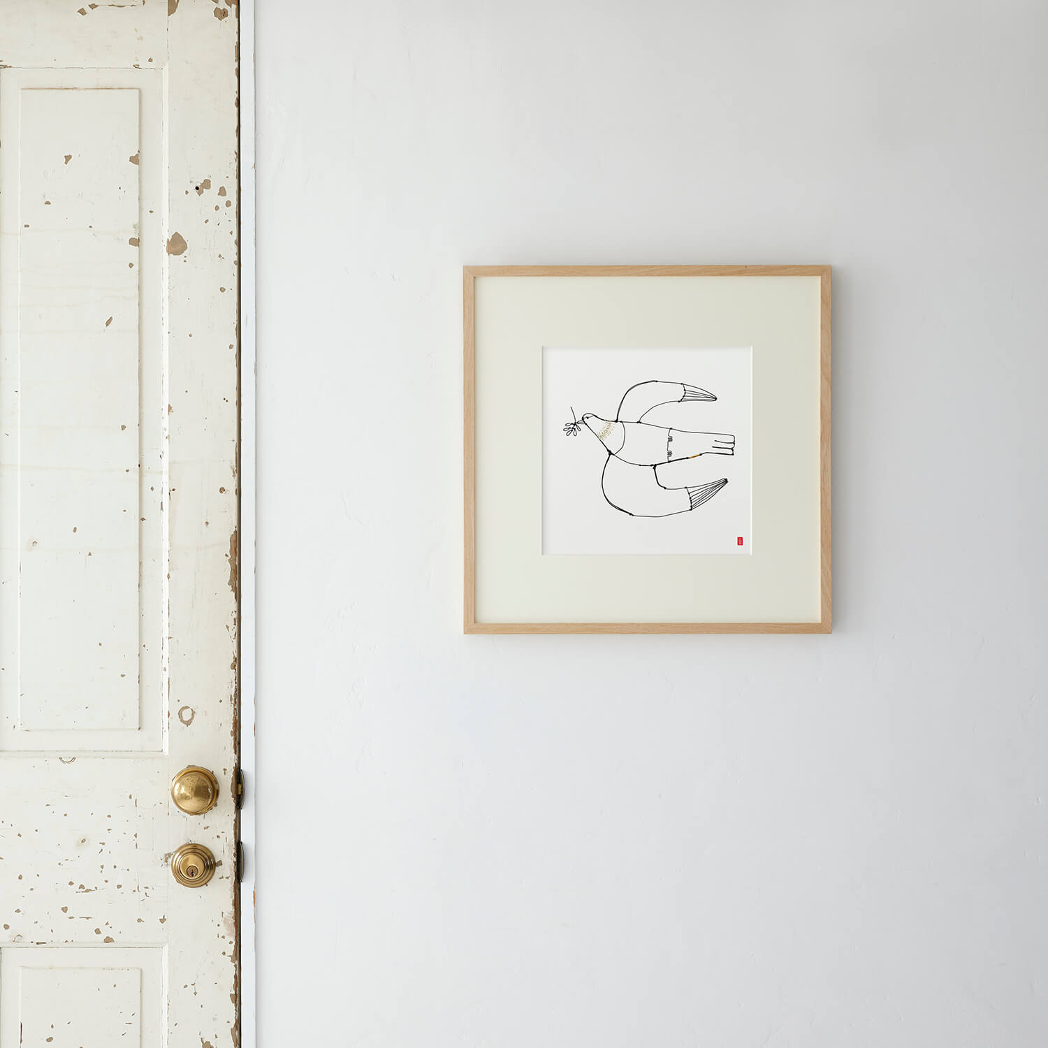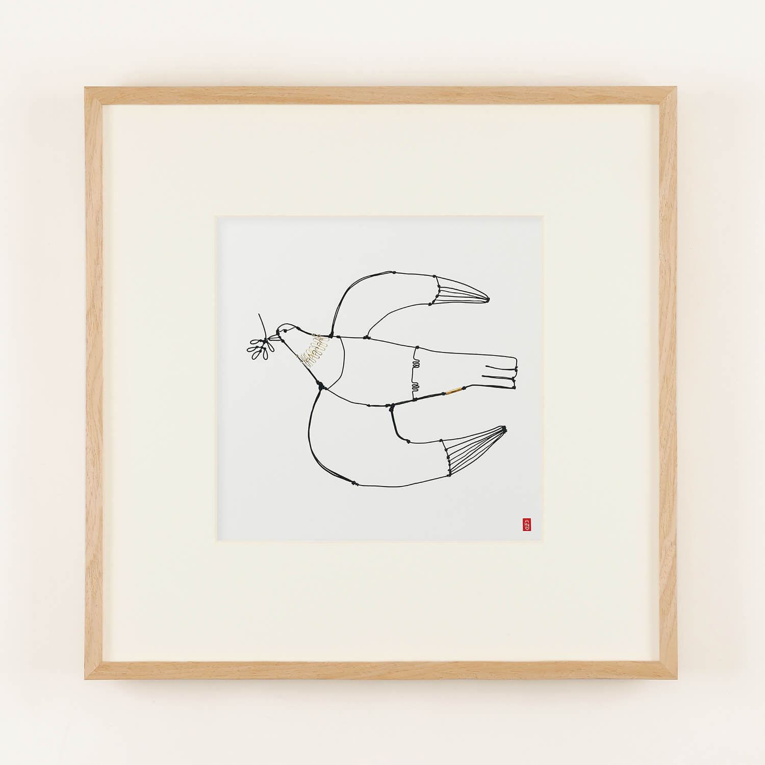 平和の象徴として知られており、オリーブを咥えたハトは国連の標章にもなっています。聖書の『ノアの箱舟』の物語で、洪水後にハトがオリーブの枝をくわえて戻ることで、平和と新しい始まりの象徴となりました。首元のゴールドの飾りが上品な、HAyU 小川学さんの作品。