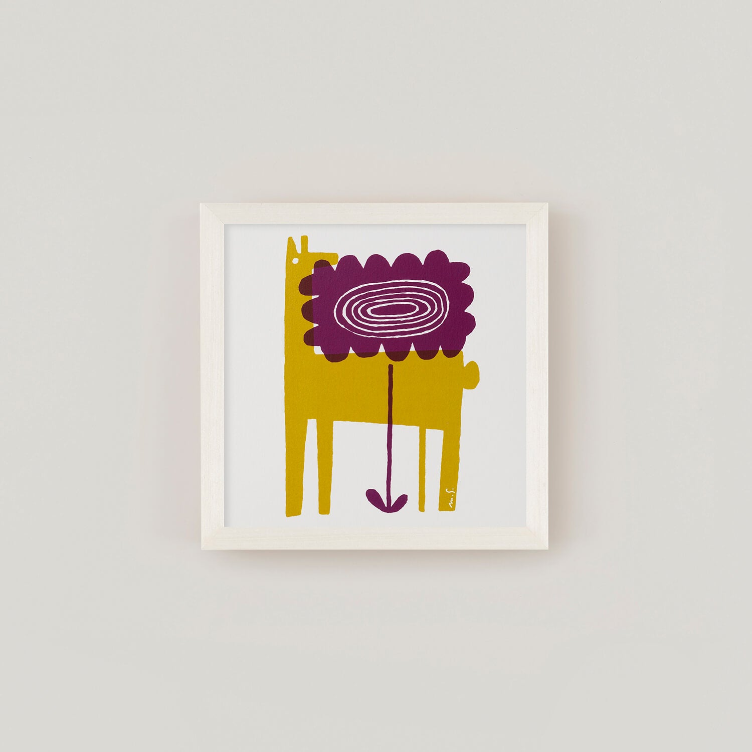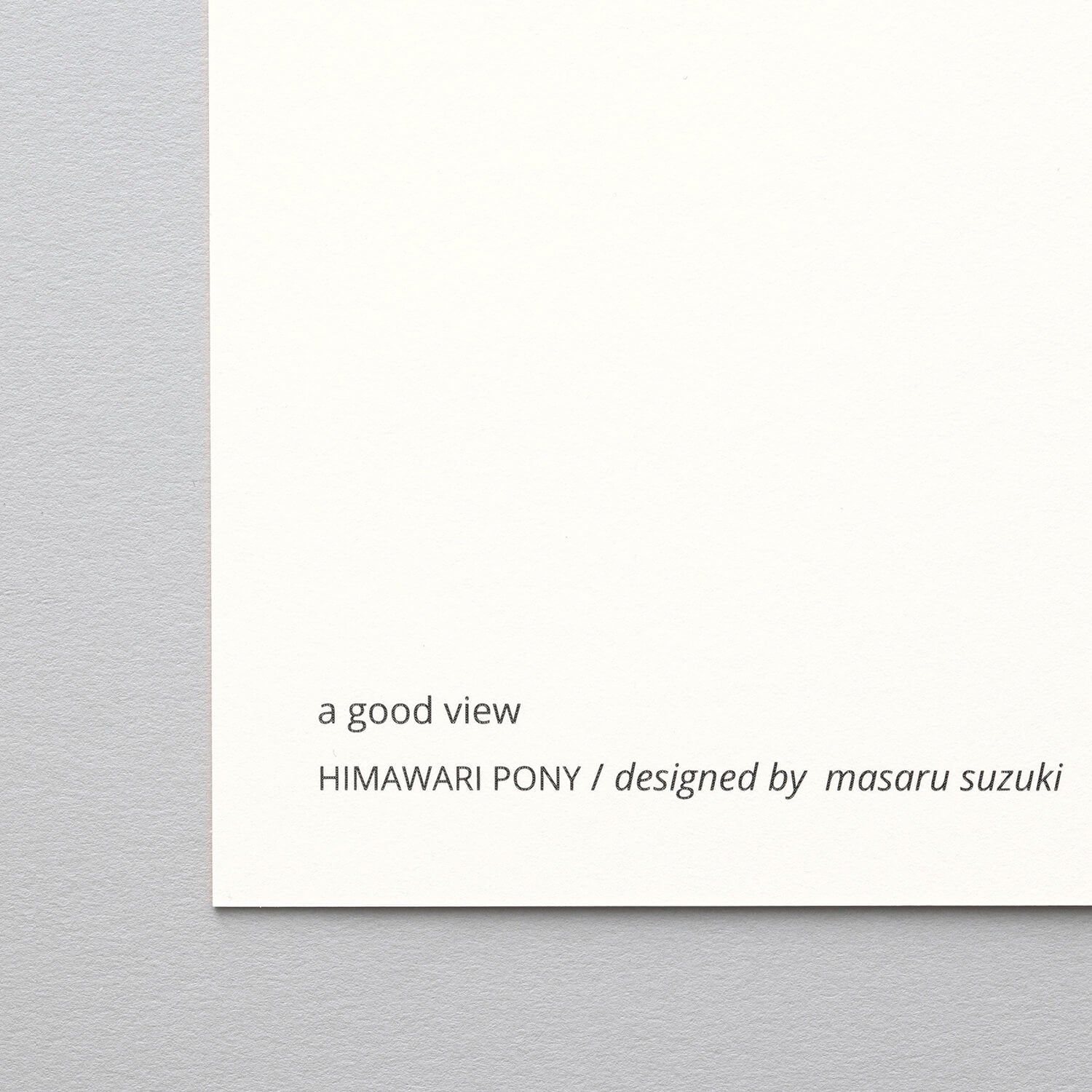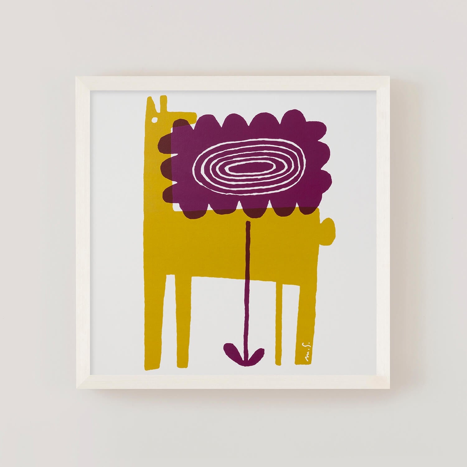 アンバランスでちょっととぼけたポニーとひまわりが重なった、鈴木マサルさんならではの作品。不自然にも思われるサイズ感で組み合わされたモチーフが、絶妙な配色とバランスで描かれている。