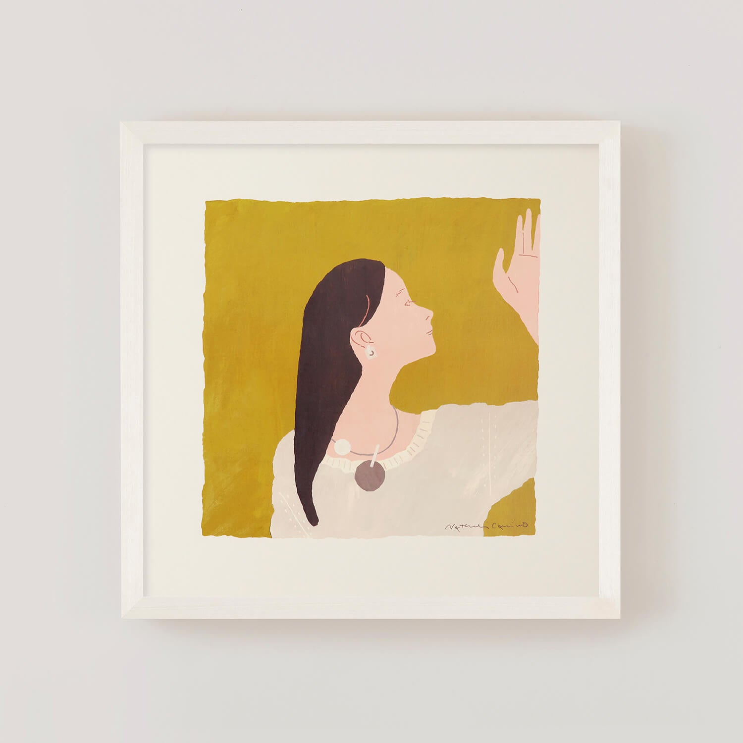 原画は色紙を手で割いて貼り付ける「ちぎり絵」という手法で制作された作品。紙野夏紀さんが描く人物画には、観る人それぞれが感情移入をしやすく、想像力を掻き立てる魅力があります。各作品のタイトルをイメージしながら、ご自身を投影させてみるのも愉しみ方のひとつですね。