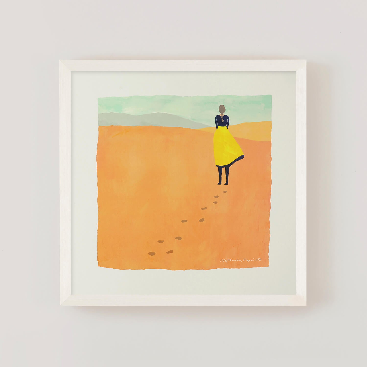 原画は色紙を手で割いて貼り付ける「ちぎり絵」という手法で制作された作品。紙野夏紀さんが描く人物画には、観る人それぞれが感情移入をしやすく、想像力を掻き立てる魅力があります。各作品のタイトルをイメージしながら、ご自身を投影させてみるのも愉しみ方のひとつですね。