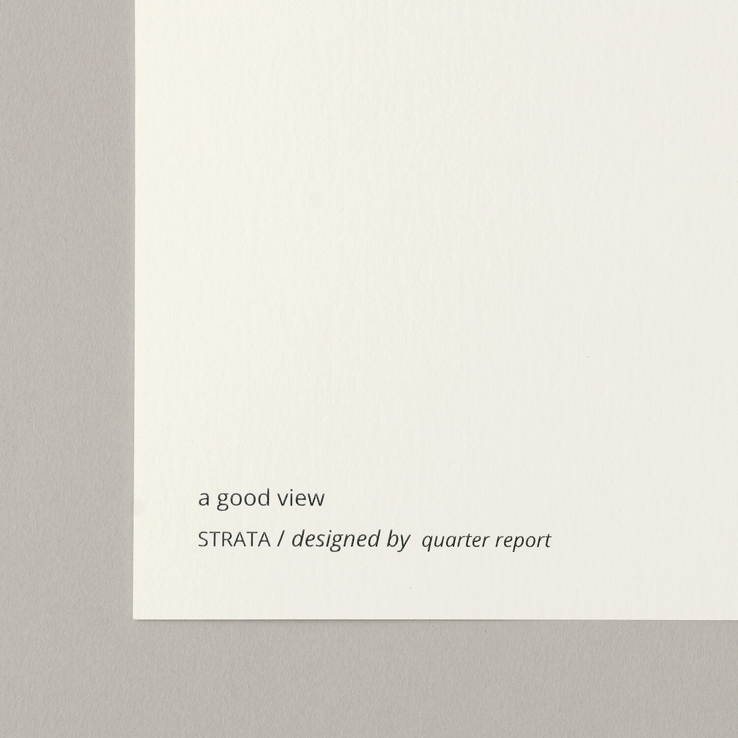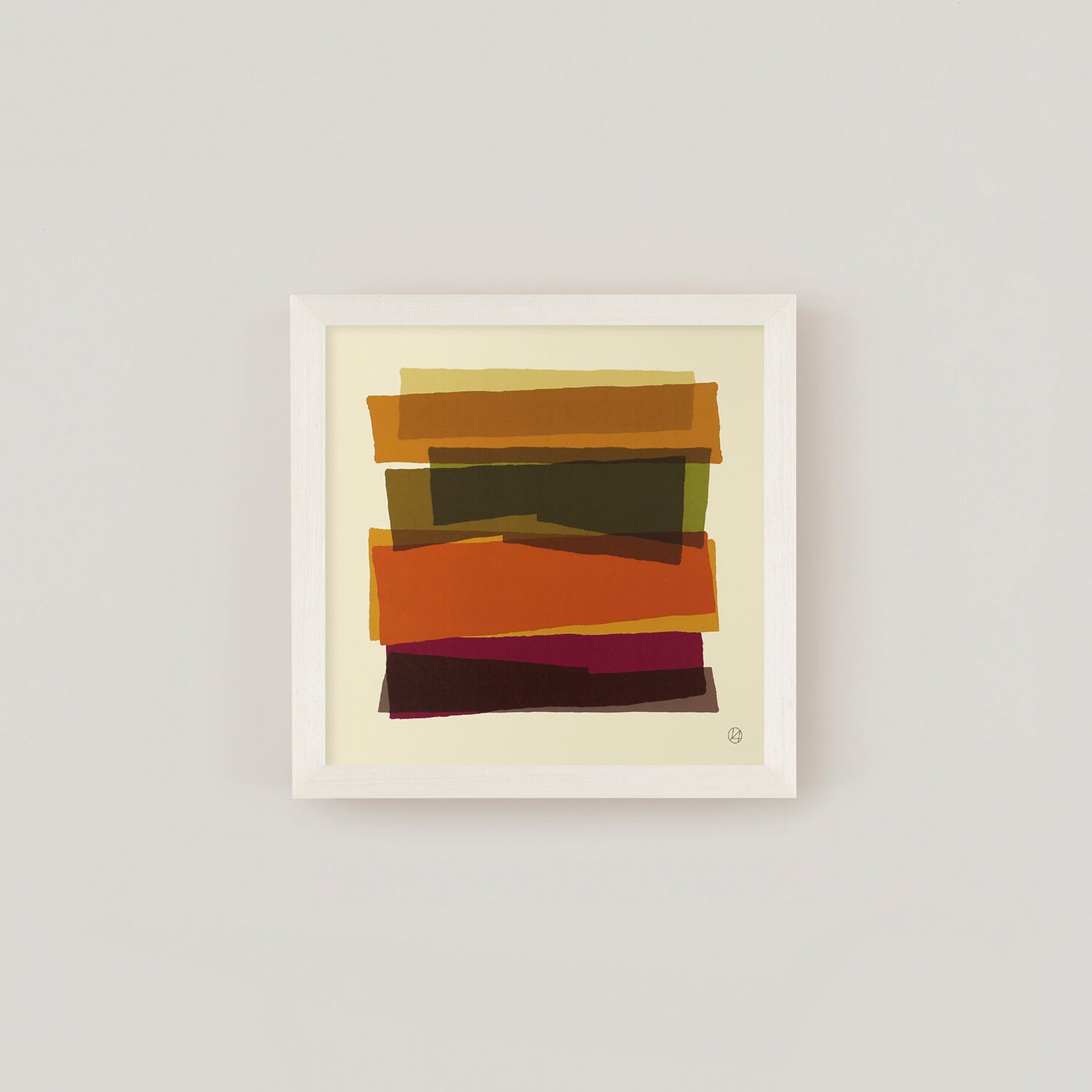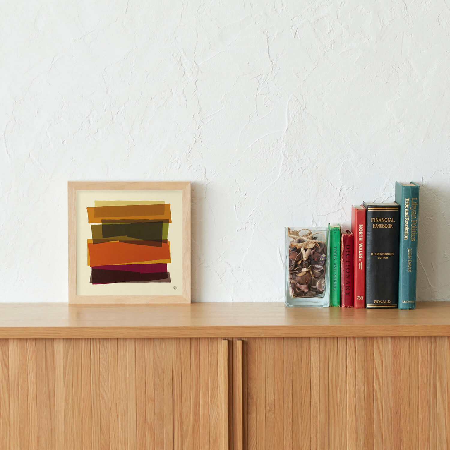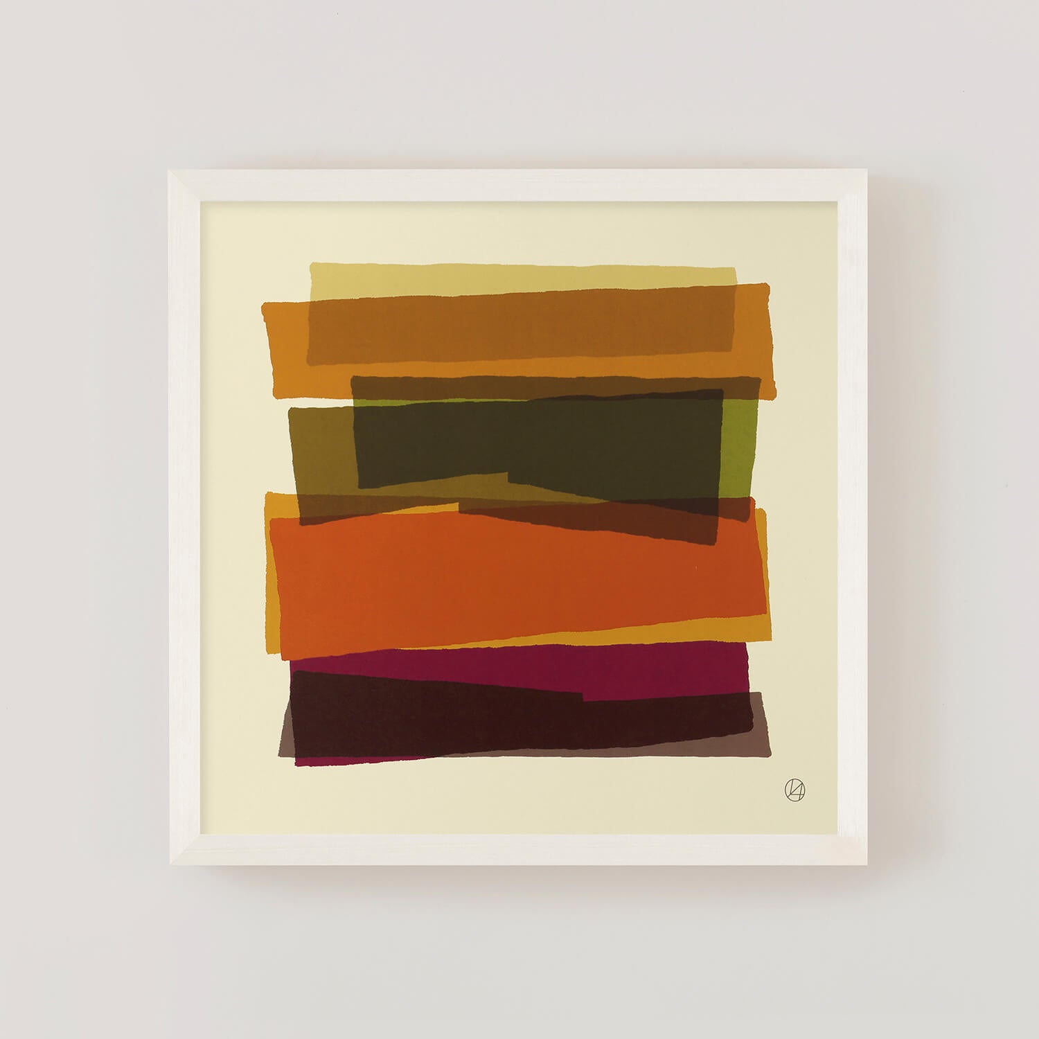 「STRATA」は日本語にすると地層という意味。幾重にも重なる図形と色が印象的な作品です。手書きタッチの幾何学柄に深みのある色を合わせることにより、カジュアルモダンなアートになりました。クォーターリポートの作品。